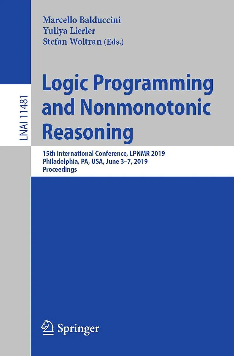 This book constitutes the refereed proceedings of the 15th International Conference on Logic Programming and Nonmonotonic Reasoning, LPNMR 2019, held in Philadelphia, PA, USA, in June 2019.The 22 full papers and 3 short papers presented in this volume were ca...