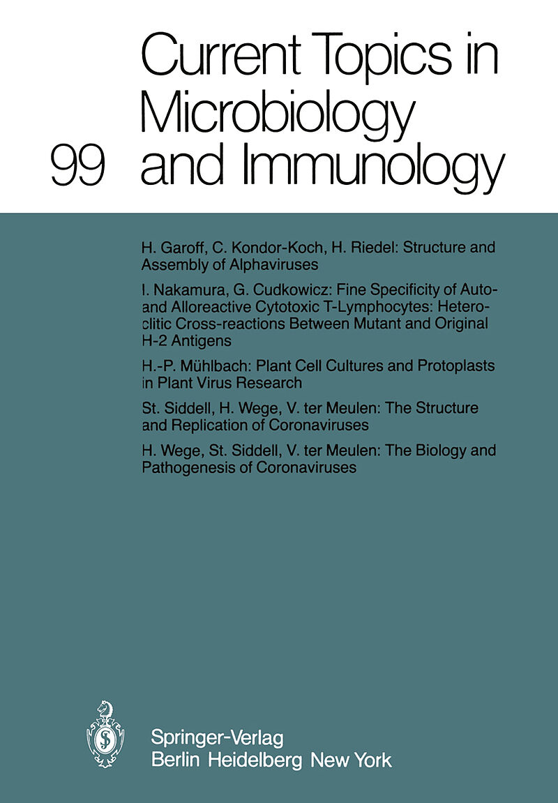 Inhalt Table of Contens.- Structure and Assembly of Alphaviruses.- Fine Specificity of Auto- and Alloreactive Cytotoxic T-Lymphocytes: Heteroclitic Cross-reactions Between Mutant and Original H-2 Antigens.- Plant Cell Cultures and Protoplasts in Plant Virus Re...
