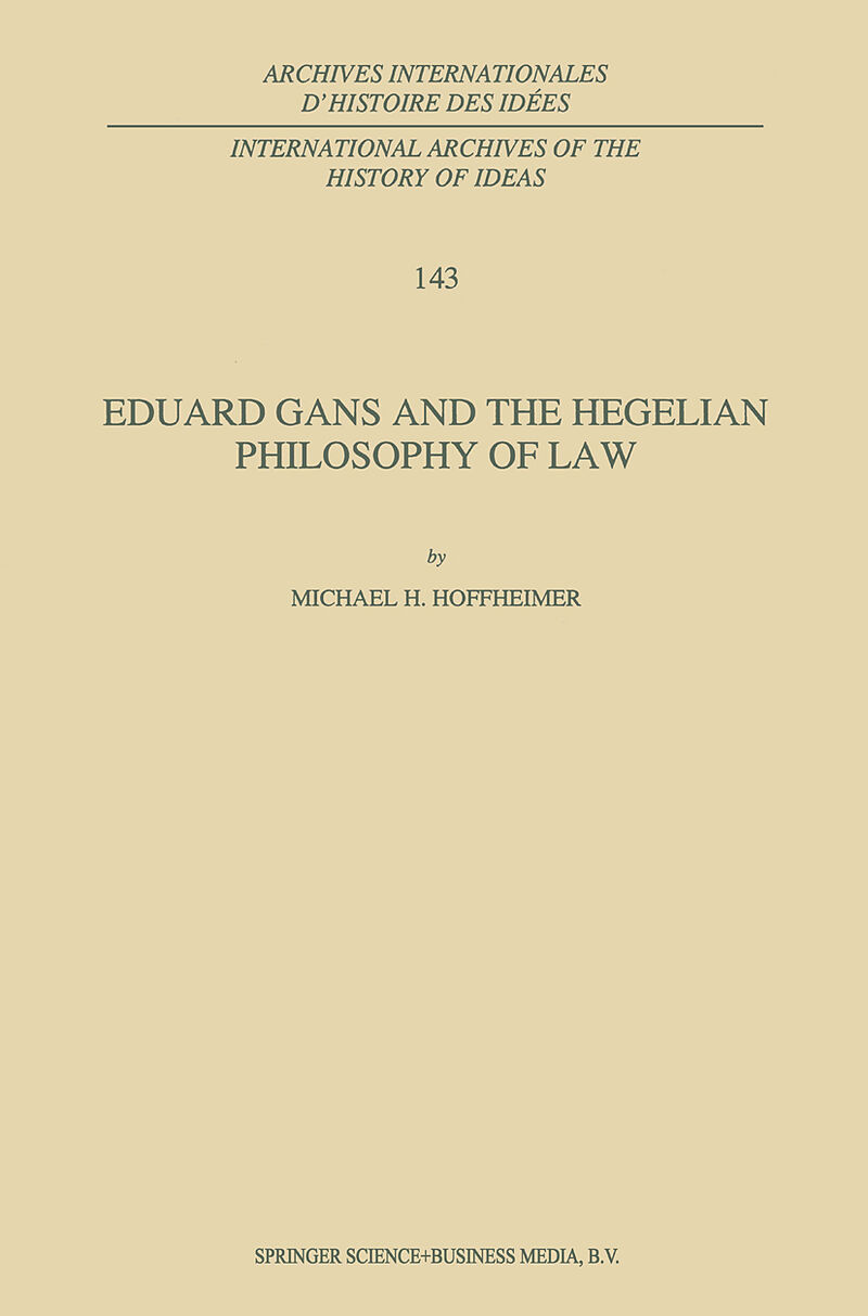 Gans ranks at the head of that important group of Hegelian thinkers that bridged the generations of Hegel and Marx. ! Yet there is a large gap between Gans 's historical importance and the scholarship on him. Despite a renewal of interest in Gans's work on th...