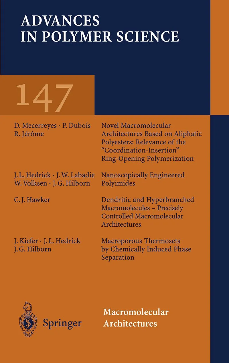 Inhalt Novel Macromolecular Architectures Based on Aliphatic Polyesters: Relevance of the "Coordination-Insertion" Ring-Opening Polymerization.- Nanoscopically Engineered Polyimides.- Dendritic and Hyperbranched Macromolecules - Precisely Controlled Macromolec...