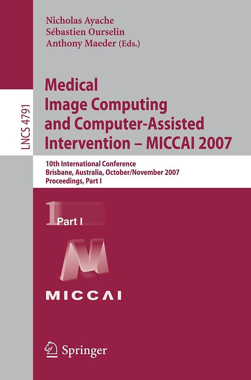 This title is part of a two-volume set that constitute the refereed proceedings of the 10th International Conference on Medical Image Computing and Computer-Assisted Intervention, MICCAI 2007. Coverage in this first volume includes diffusion tensor imaging an...This title is part of a two-volume set that constitute the refereed proceedings of the 10th International Conference on Medical Image Computing and Computer-Assisted Intervention, MICCAI 2007. Coverage in this first volume includes diffusion tensor imaging and computing, cardiac imaging and robotics, image segmentation and classification, image guided intervention and robotics, innovative clinical and biological applications, brain atlas computing, and simulation of therapy.