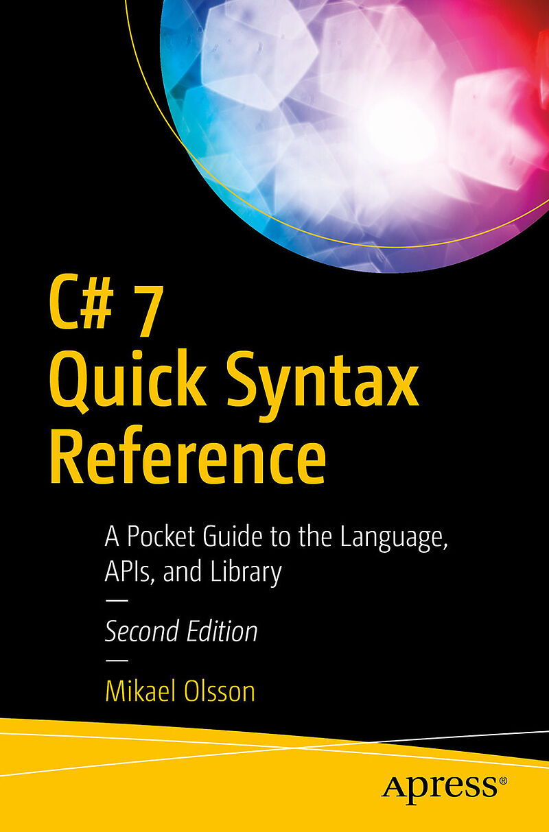 This quick C# 7 guide is a condensed code and syntax reference to the C# programming language, updated with the latest features of C# 7.3 for .NET and Windows 10. It presents the essential C# 7 syntax in a well-organized format that can be used as a handy ref...