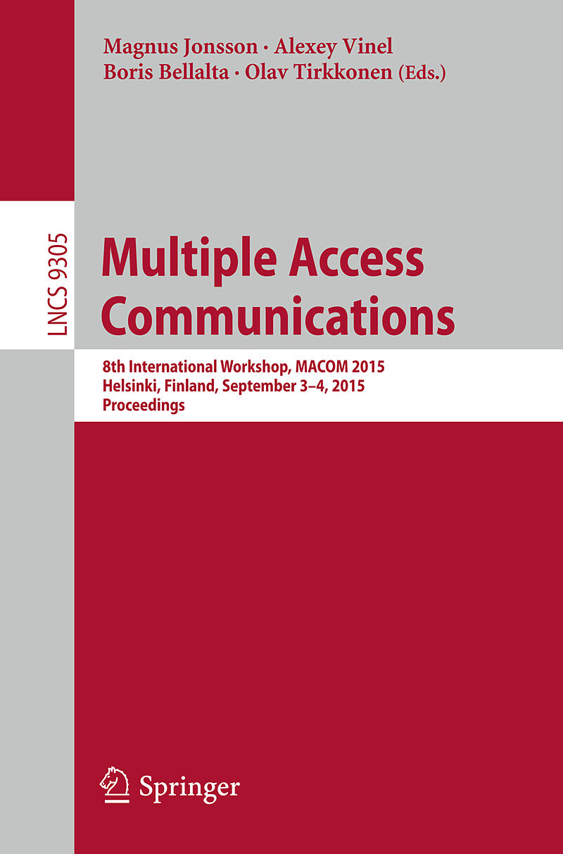 This book constitutes the refereed proceedings of the 8th International Workshop on Multiple Access Communications, MACOM 2015, held in Helsinki, Finland, in September 2015. The 12 full papers presented were carefully reviewed and selected from 18 submissions...