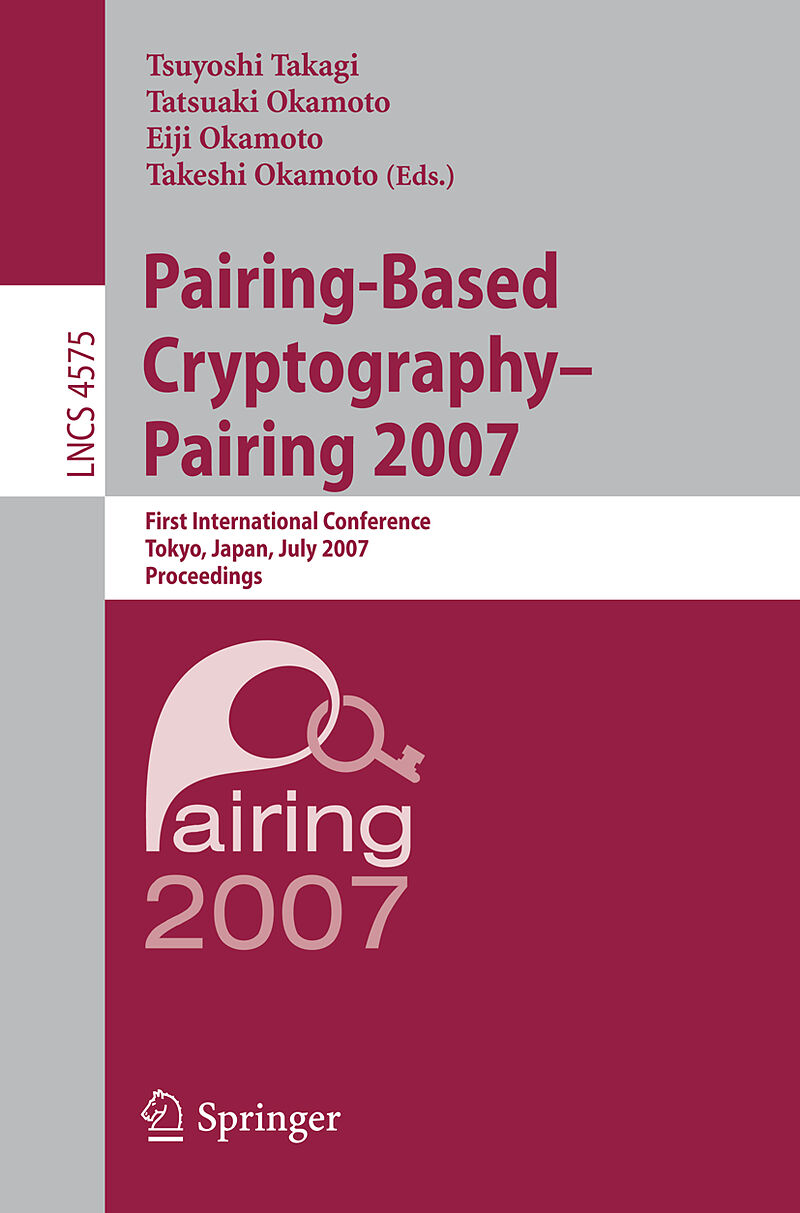 Pairing-based cryptography is at the very leading edge of the current wave in computer cryptography. That makes this book all the more relevant, being as it is the refereed proceedings of the First International Conference on Pairing-Based Cryptography, Pairi...