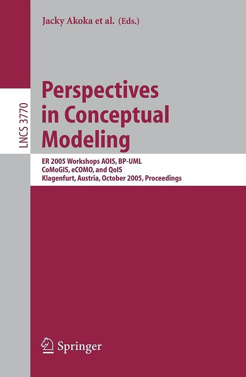 First International Workshop on Best Practices of UML (BP-UML 2005).- Preface to BP-UML 2005.- Experience Reports and new Applications.- Current Practices in the Use of UML.- An Empirical Study of the Nesting Level of Composite States Within UML Statechart Diagrams.- Utilizing a Multimedia UML Framework for an Image Database Application.- Model Evaluation and Requirements Modeling.- Object Class or Association Class? Testing the User Effect on Cardinality Interpretation.- Organizing and Managing Use Cases.- A Comparative Analysis of Use Case Relationships.- Metamodeling and Model Driven Development.- Applying Transformations to Model Driven Development of Web Applications.- A Precise Approach for the Analysis of the UML Models Consistency.- A UML 2 Profile for Business Process Modelling.- Seventh International Bi-conference Workshop on Agent-Oriented Information Systems (AOIS-2005).- Preface to AOIS 2005.- Invited Talk.- Agent Oriented Data Integration.- Positions in Engineering Agent Oriented Systems.- AOSE and Organic Computing - How Can They Benefit from Each Other? Position Paper.- Modeling Dynamic Engineering Design Processes in PSI.- Agent Oriented Methodologies and Conceptual Modeling.- Preliminary Basis for an Ontology-Based Methodological Approach for Multi-agent Systems.- DDEMAS: A Domain Design Technique for Multi-agent Domain Engineering.- An Agent-Oriented Meta-model for Enterprise Modelling.- Agent Communication and Coordination.- An Approach to Broaden the Semantic Coverage of ACL Speech Acts.- Normative Pragmatics for Agent Communication Languages.- Experimental Comparison of Rational Choice Theory, Norm and Rights Based Multi Agent Systems.- Second International Workshop on Conceptual Modeling for Geographic Information Systems (CoMoGIS 2005).- Preface to CoMoGIS 2005.- Invited Talk.- Map Algebra Extended with Functors for Temporal Data.- Spatial and Spatio-temporal Data Representation.- A Formal Model for Representing Point Trajectories in Two-Dimensional Spaces.- A Logical Approach for Modeling Spatio-temporal Objects and Events.- Conceptual Neighbourhood Diagrams for Representing Moving Objects.- Spatial Relations.- A Refined Line-Line Spatial Relationship Model for Spatial Conflict Detection.- Assessing Topological Consistency for Collapse Operation in Generalization of Spatial Databases.- Spatial Relations for Semantic Similarity Measurement.- Spatial Queries, Analysis and Data Mining.- Approximate Continuous K Nearest Neighbor Queries for Continuous Moving Objects with Pre-defined Paths.- Spatio-temporal Similarity Analysis Between Trajectories on Road Networks.- Using Data Mining for Modeling Personalized Maps.- Data Modeling and Visualisation.- 3D Scene Modeling for Activity Detection.- SAMATS - Edge Highlighting and Intersection Rating Explained.- Applying Semantic Web Technologies for Geodata Integration and Visualization.- Sixth International Workshop on Conceptual Modeling Approaches for e-Business (eCOMO 2005).- Preface to eCOMO 2005.- Bargaining in E-Business Systems.- Conceptual Content Management for Enterprise Web Services.- Verifying Web Services Composition.- Towards Amplifying Business Process Reuse.- First International Workshop on Quality of Information Systems (QoIS 2005).- Preface to QoIS 2005.- Information System Models Quality.- Measuring the Perceived Semantic Quality of Information Models.- Situated Support for Choice of Representation for a Semantic Web Application.- Towards Systematic Model Assessment.- A Fuzzy Based Approach to Measure Completeness of an Entity-Relationship Model.- Quality Driven Processes.- Managing Information Quality in e-Science: A Case Study in Proteomics.- Tool Support and Specification Quality: Experimental Validation of an RE-Tool Evaluation Framework.- Improving Object-Oriented Micro Architectural Design Through Knowledge Systematization.- Tutorials.- Tutorial 1: eduWeaver - The Courseware Modeling Tool.- Tutorial 2: FOOM - Functional and Object Oriented Methodology: An Integrated Approach.- Tutorial 3: Domain Engineering - Using Domain Concepts to Guide Software Design.- Tutorial 4: Reasoning About Web Information Systems.- Tutorial 5: Schema and Data Translation.- Tutorial 6: Modeling and Simulation of Dynamic Engineering Design Processes.- Tutorial 7: Modeling Enterprise Applications.