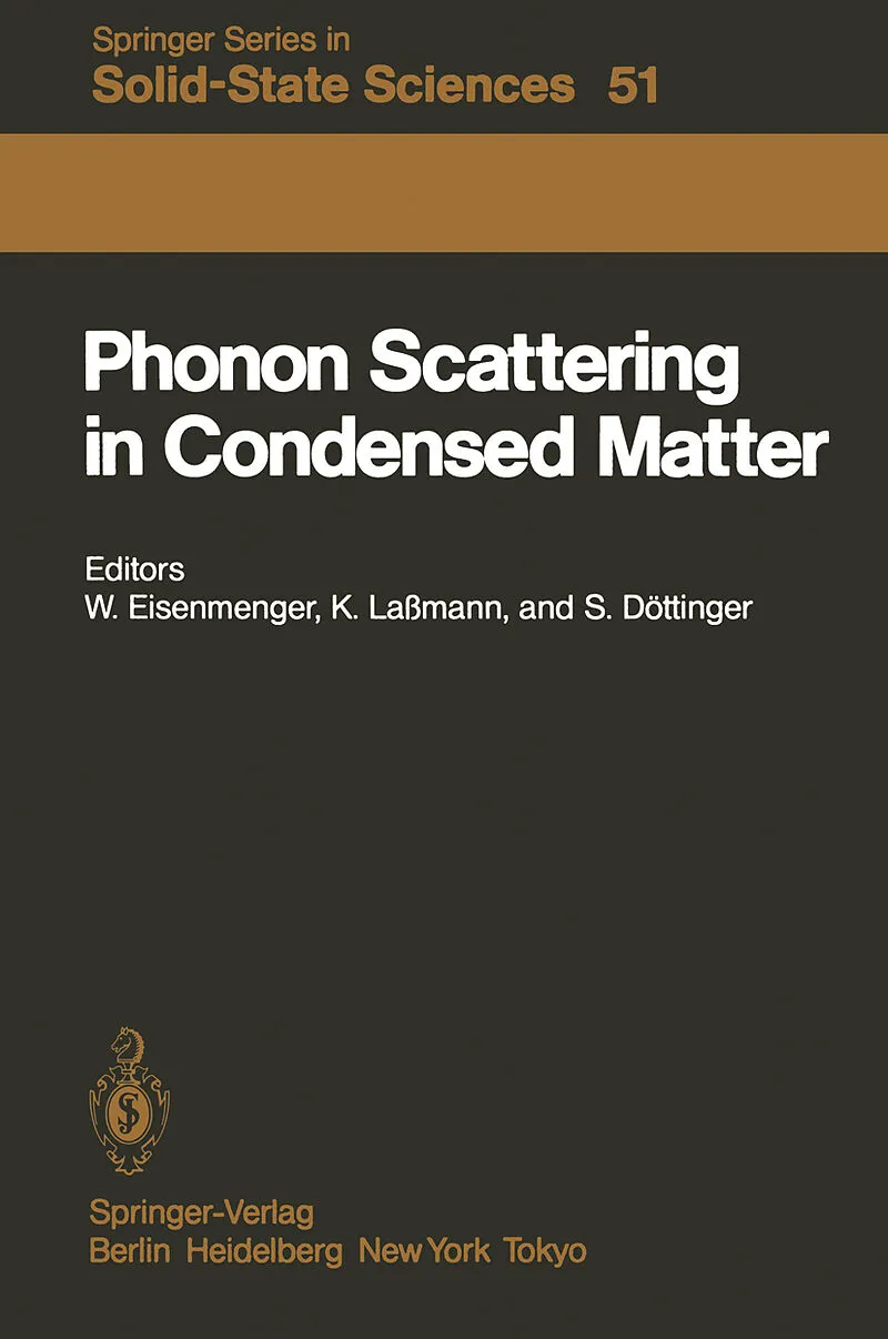 This volume contains the proceedings of the Fourth International Conference on Phonon Scattering in Condensed Matter held from August 22-26, 1983 at the University of Stuttgart. The preceding conferences were organized at Saint Maxime and Paris in 1972, at th...This volume contains the proceedings of the Fourth International Conference on Phonon Scattering in Condensed Matter held from August 22-26, 1983 at the University of Stuttgart. The preceding conferences were organized at Saint Maxime and Paris in 1972, at the University of Nottingham in 1975, and at the Brown University Providence/Rhode Island in 1979. The Stuttgart conference, like the preceding conferences, was mainly con cerned with "propagating" high-frequency acoustic phonons, mechanical waves and heat up to the lattice limiting frequency. Lattice dynamics, optical pho nons, phase transitions, etc., were included as far as they are involved in acoustical phonon scattering, propagation and generation. In this context the conference covered all aspects of acoustical phonon physics, especially generation of phonons, propagation, scattering and detection. Since acoustic phonons participate in most energy-transfer processes in solids and liquids, the field of interest is growing rapidly. Therefore exciting new developments of acoustic phonon physics could be presented at the Stuttgart conference as well as important progress with respect to well-known problems, as, for example, the Kapitza resistance. Two hundred and six scientists from 21 countries attended the conference. Thirteen invited papers and 105 contributed papers, with 34 as posters, were presented. The discussions are included in this volume. A discussion session on large wave vector phonons was organized and chaired by V. Narayanamurti. A discussion session on phonon scattering at interfaces was organized and chaired by R.O. Pohl.