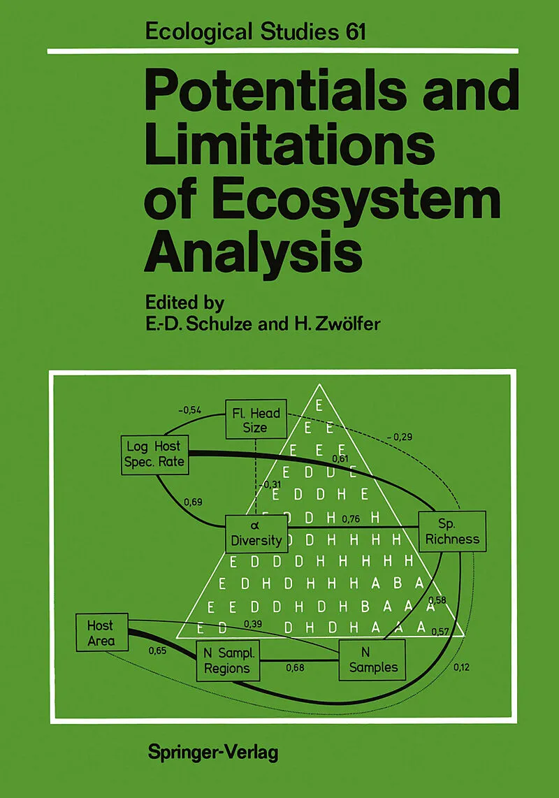 to the Problem of Ecosystem Analysis.- to the Problem of Ecosystem Analysis.- 1 Input/Output Analysis of Ecosystems.- Preface.- A. Stability, Elasticity, and Resilience of Terrestrial Ecosystems with Respect to Matter Balance.- I. Introduction.- II. Definition of a Terrestrial Ecosystem with Respect to Ion Cycling.- III. Steady State and Elasticity.- IV. Ecosystems as Open Systems in Steady State.- V. Possible De-Couplings of the Matter Cycle.- VI. The Acid-Buffering Properties of Soils.- VII. The Role of Acid Stress in Ecosystems.- VIII. Stability and Resilience from the Point of View of Matter Balance.- IX. Conclusions.- References.- B. Water and Carbon Fluxes in Ecosystems.- I. Introduction.- II. What Is an Ecosystem with Respect to Carbon and Water Fluxes.- III. The Study of Ecosystems.- IV. Analysis of Ecosystem Functioning.- V. Prediction of Ecosystem Functioning.- VI. Conclusions.- References.- C. Environmental Transfer of Some Organic Micropollutants.- I. Introduction.- II. Study Area, Sampling Procedures, and Analytical Methods.- III. Behavior of Organic Micropollutants in the Atmospheric Boundary Layer.- IV. Movement of Organic Micropollutants in Soil- and Groundwater.- V. Movement of Organic Micropollutants in a River.- VI. Distribution of Organic Micropollutants in the Food Web 89.- VII Equilibrium Distribution and Fluxes of Organic Micropollutants.- VIII. Conclusions. Potentials and Limits of Determining Environmental Chemodynamics of Organic Micropollutants.- References.- D. Simple and Diversified Crop Rotations - Approach and Insight into Agroecosystems.- I. Introduction.- II. Agroecosystems and Natural Ecosystems - a Comparison in View of Their Historical Development.- III. Farm Management and Production Systems.- IV. Common Differences Between Agroecosystems and Natural Ecosystems.- V. Conclusions.- References.- 2 Processes and Functions at the Primary Producer Level.- Preface.- A. Plant Specialization to Environments of Different Resource Availability.- I. Introduction.- II. Plant Growth as a Regulated System of Resource Use.- III. Plant Organization.- IV. Plant Specialization to Specific Habitats.- V. Ecosystem Implications.- VI. Conclusions.- References.- B. Control of Leaf Carbon Assimilation - Input of Chemical Energy into Ecosystems.- I. Introduction.- II. Photosynthetic Performance of Plants Under Natural Conditions.- III. The Types of External and Internai Factors Which Determine Leaf Carbon Gain.- IV. Carbon Dioxide Exchange of Thallophytes.- V. Carbon Dioxide Exchange of Leaves of Higher Plants.- VI. Conclusions.- References.- C. Plant Architecture and Resource Competition.- I. Introduction.- II. Traits of a Competitive Plant.- III. Competition for Light.- IV. Morphological Flexibility and the Light Environment.- V. Competition Below Ground.- VI. Concluding Remarks.- References.- D. Responses to Water and Nutrients in Coniferous Ecosystems.- I. Introduction.- II. Growth of Pinus sylvestris in Sweden.- III. Growth of Pinus radiata in Australia.- IV. Comparative Aspects of Growth in Pinus.- V. Conclusions.- References.- E. Physiological Ecology, Disturbance, and Ecosystem Recovery.- I. Introduction.- II. Physiological Ecology and Ecosystem Complexity.- III. Disturbance and Response in Closed Forests: an Example.- IV. Conclusions.- References.- F. A Hierarchic Approach in Causal Ecosystem Analysis. The Calcifuge-Calcicole Problem in Alpine Grasslands.- I. Introduction.- II. Case Study: The Calcifuge-Calcicole Problem in Alpine Grasslands.- III. Which Is the Most Important Factor for the Floristic Differences Between Calcifuge and Calcicole Alpine Grasslands?.- IV. Hierarchy of Factors; Causal and Correlative Factors.- V. Hierarchy of Answers to the Question: Which Is the Relatively Most Important Factor for Floristic Differences Between Plant Communities?.- VI. Conclusions.- References.- G. Extinction and Naturalization of Plant Species as Related to Ecosystem Structure and Function.- I. Introduction.- II. Long-Term Development of Vergetation: Migrations Following the Ice Age.- III. Extinction and Decline of Species.- IV. Introduction and Naturalization of Species.- V. Conclusions.- References.- H. Flowers as Food Sources and the Cost of Outcrossing.- I. Introduction.- II. Flowers as Food Sources.- III. Flowers Are More Than Food Sources.- IV. Conclusions.- References.- 3 Processes and Functions at the Consumer Level.- Preface.- A. Species Richness, Species Packing, and Evolution in Insect-Plant Systems.- H. Zwölfer.- I. Introduction.- II. Species Richness in Phytophagous Insects: a Literature Review.- III. Parameters Determining the Species Richness of Insects Associated with Cardueae Flower Heads.- IV. Adaptations of Phytophages to Différent Scales of Cardueae Flower Heads.- V. Conclusions.- References.- B. Niche Structure and Evolution in Ecosystems.- I. Introduction.- II. The Niche Concept.- III. The Niche Concept and Exploitative Competition.- IV. A Model for Genetical Ecology.- V. Null Models.- VI. Invasion, Extinction, and the Buildup of Communities.- VII. Potentials and Limitations.- VIII. Conclusions.- References.- C. Predictability in Lake Ecosystems: the Role of Biotic Interactions.- I. Introduction.- II. Seasonal Succession of Phytoplankton.- III. Size Structure of the Zooplankton Community.- IV. Conclusions.- References.- D. Saline Lake Ecosystems.- I. Introduction.- II. Characteristics of Saline Lake Ecosystems.- III. Conclusions.- References.- E. Characteristics of Lotic Ecosystems and Consequences for Future Research Directions.- I. Introduction.- II. Environmental Variability and Species Richness.- III. Biological Interactions in Stream Communities: Facultative or Obligate?.- VI. Energetics in Benthic Macroinvertebrate Communities.- V. Conclusions.- References.- F. Experimental Analysis of Processes Between Species on Marine Tidal Flats.- I. Introduction.- II. Uncertainty in Field Experiments.- III. Species Connections on Tidal Flats.- IV. Concl