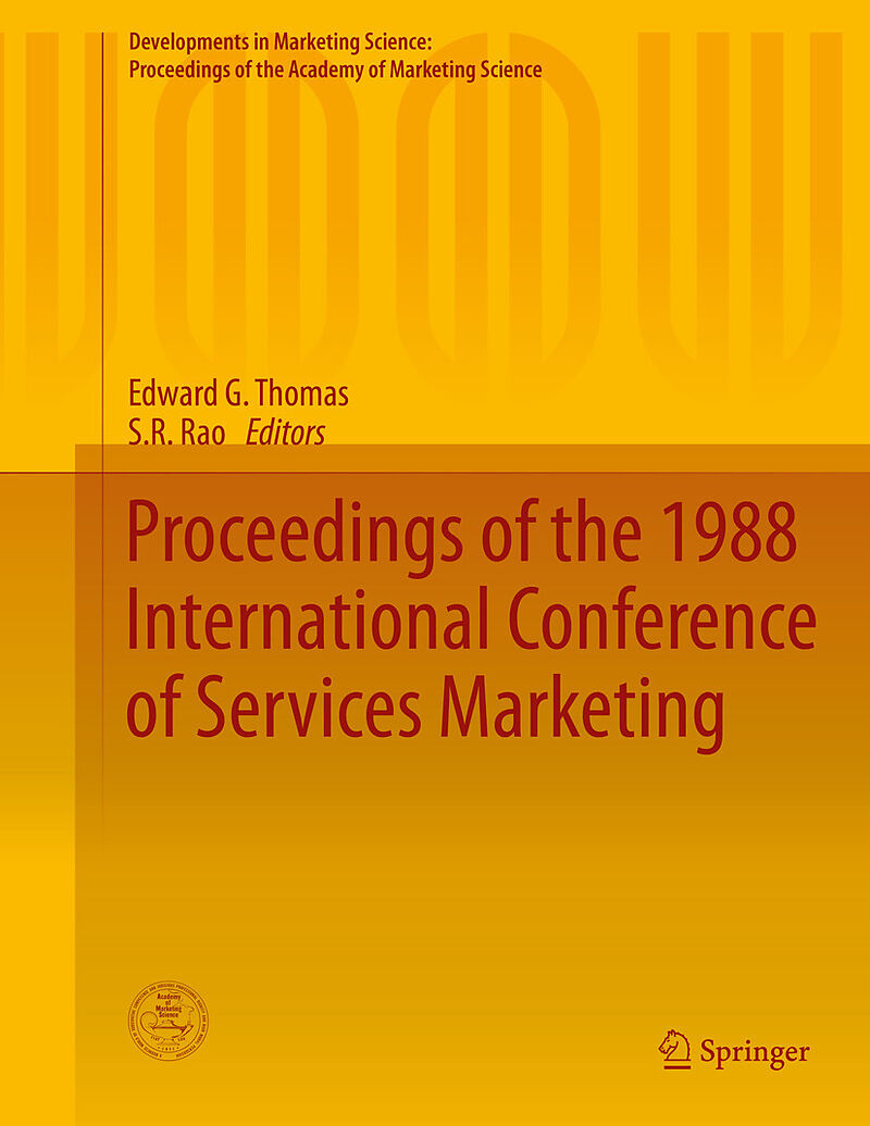 This volume includes the full proceedings from the 1988 International Conference on Services Marketing presented by the Academy of Marketing Science (AMS) and the Marketing Department of Cleveland State University in Cleveland, Ohio. It provides a variety of ...
