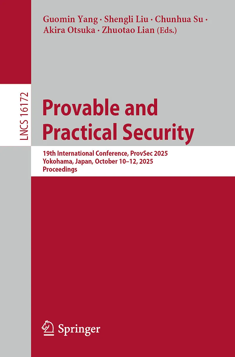 This book constitutes the proceedings of the 19th International Conference on Provable and Practical Security, ProvSec 2025, which took place in Yokohama, Japan, during October 10-12, 2025. The 22 full papers, 3 short papers and 5 posters included in this boo...