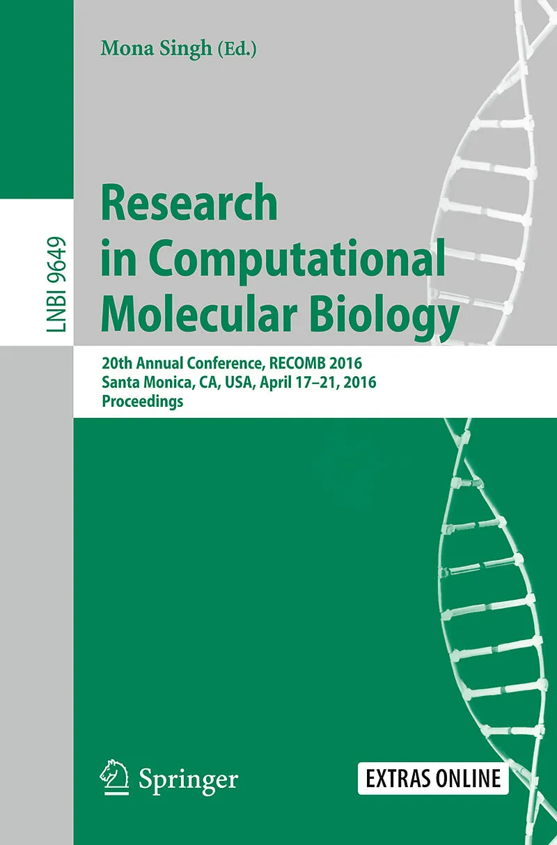 This book constitutes the proceedings of the 20th Annual Conference on Research in Computational Molecular Biology, RECOMB 2016, held in Santa Monica, CA, USA, in April 2016. The 15 regular papers presented in this volume were carefully reviewed and selected ...