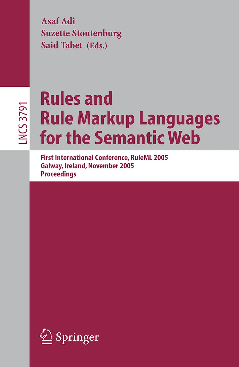 RuleML 2005 was the ?rst international conference on rules and rule markup languages for the Semantic Web, held in conjunction with the International Semantic Web C- ference (ISWC) at Galway, Ireland. With the success of the RuleML workshop series came the ne...