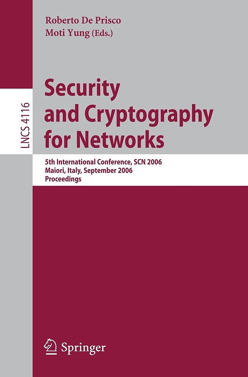 Here are the refereed proceedings of the 5th International Conference on Security and Cryptology for Networks, SCN 2006. The book offers 24 revised full papers presented together with the abstract of an invited talk. The papers are organized in topical sectio...