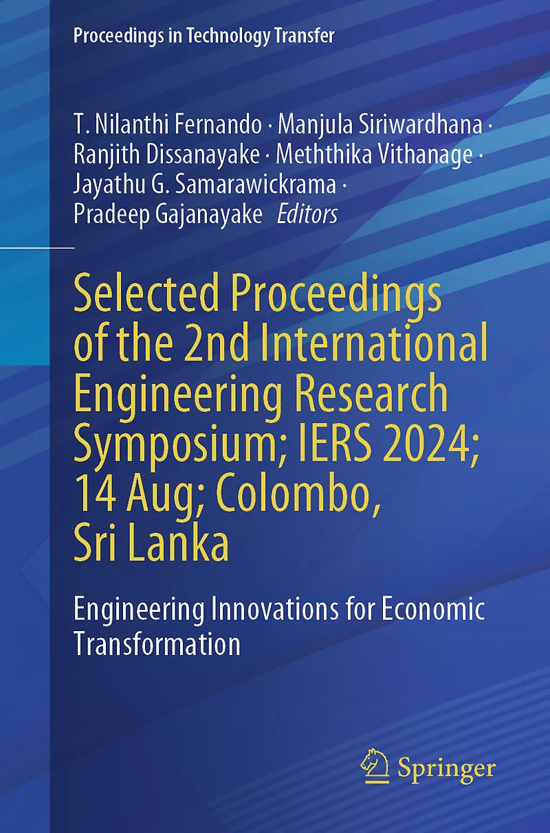 This book presents selected peer reviewed articles from the 2nd International Engineering Research Symposium- IERS 2024, held at Colombo in Sri Lanka, under the theme of 'Engineering Innovations for Economic Transformation". It highlights the latest advanceme...This book presents selected peer reviewed articles from the 2nd International Engineering Research Symposium- IERS 2024, held at Colombo in Sri Lanka, under the theme of 'Engineering Innovations for Economic Transformation". It highlights the latest advancements in engineering research, innovations, and technological principles aimed at driving economic changes and improvements within society and the industry. IERS2024 covers the areas of Agricultural Engineering, Chemical Engineering, Civil Engineering, Computer Science & Engineering, Electrical Engineering, Electronics & Telecommunication Engineering, Mechanical & Mechatronics Engineering, Materials Science & Engineering, Manufacturing & Process Engineering, and other Engineering discipline relevant to the theme of IERS 2024.