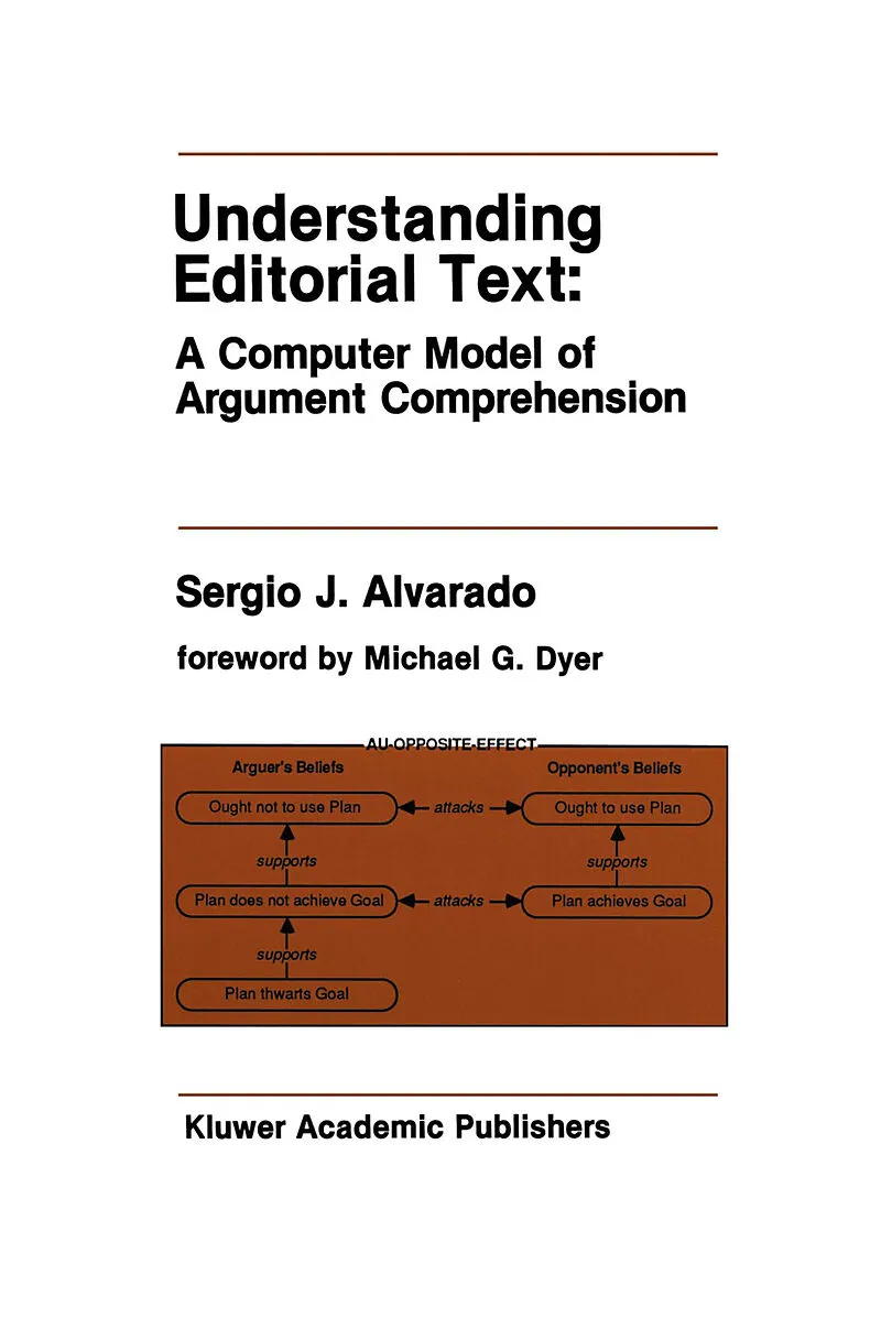 by Michael G. Dyer Natural language processing (NLP) is an area of research within Artificial Intelligence (AI) concerned with the comprehension and generation of natural language text. Comprehension involves the dynamic construction of conceptual representat...by Michael G. Dyer Natural language processing (NLP) is an area of research within Artificial Intelligence (AI) concerned with the comprehension and generation of natural language text. Comprehension involves the dynamic construction of conceptual representations, linked by causal relationships and organized/indexed for subsequent retrieval. Once these conceptual representations have been created, comprehension can be tested by means of such tasks as paraphrasing, question answering, and summarization. Higher-level cognitive tasks are also modeled within the NLP paradigm and include: translation, acquisition of word meanings and concepts through reading, analysis of goals and plans in multi-agent environments (e. g. , coalition and counterplanning behavior by narrative characters), invention of novel stories, recognition of abstract themes (such as irony and hypocrisy), extraction of the moral or point of a story, and justification/refutation of beliefs through argumentation. The robustness of conceptually-based text comprehension systems is directly related to the nature and scope of the knowledge constructs applied during conceptual analysis of the text. Until recently, conceptually-based natural language systems were developed for, and applied to, the task of narrative comprehension (Dyer, 1983a; Schank and Abelson, 1977; Wilensky, 1983). These systems worked by recognizing the goals and plans of narrative characters, and. using this knowledge to build a conceptual representation of the narrative, xx UNDERSTANDING EDITORIAL TEXT including actions and intentions which must be inferred to complete the representation. A large portion of text appearing in newspapers and magazines, however, is editorial in nature.