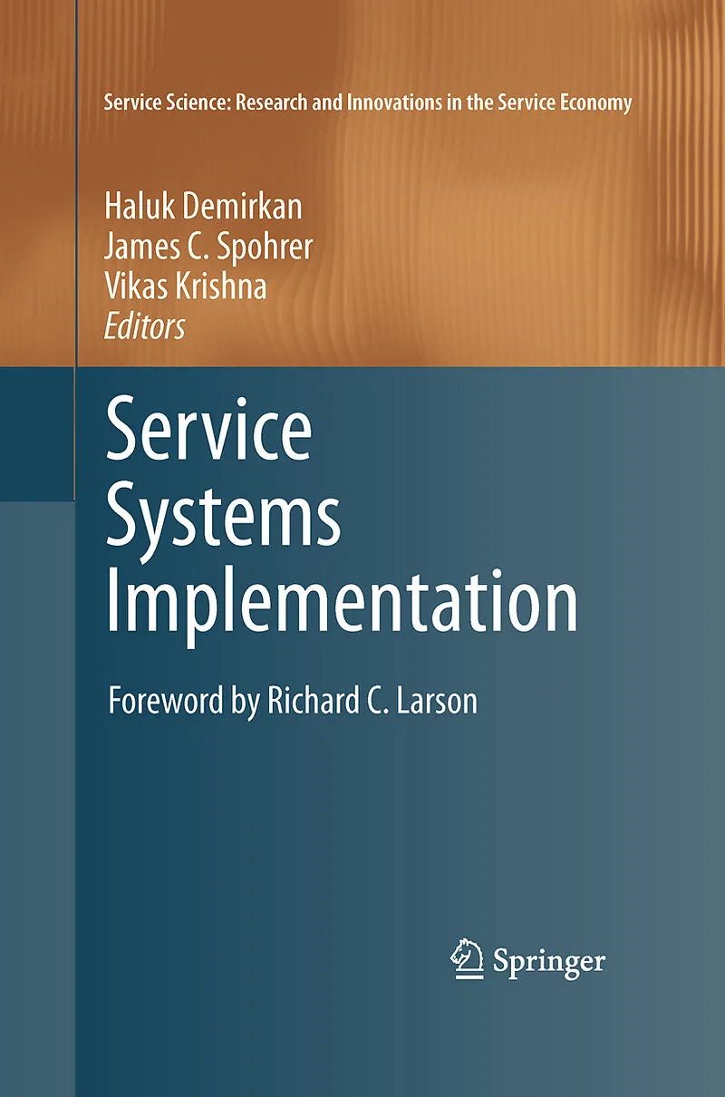 Service Systems Implementation provides the latest applications and practices aimed at improving the key performance indicators of service systems, especially those related to service quality, service productivity, regulatory compliance, and sustainable servi...