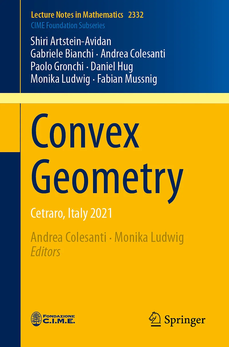 This book collects the lecture notes of the Summer School on Convex Geometry, held in Cetraro, Italy, from August 30th to September 3rd, 2021. Convex geometry is a very active area in mathematics with a solid tradition and a promising future. Its main objects...