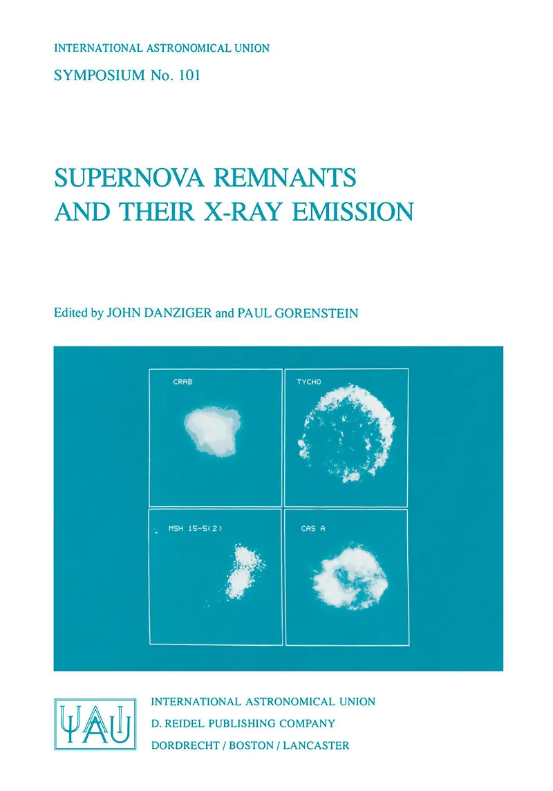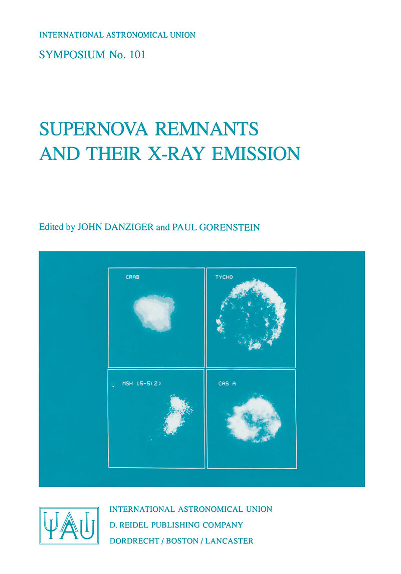 IAU Symposium 101, Supernova Remnants and Their X-ray Emission, was held on the Island of San Giorgio, Venice, 30 August - 2 September 1982. It was co-sponsored by the National Research Council, Italy, the University of Padua, the Observatory of Padua, and th...IAU Symposium 101, Supernova Remnants and Their X-ray Emission, was held on the Island of San Giorgio, Venice, 30 August - 2 September 1982. It was co-sponsored by the National Research Council, Italy, the University of Padua, the Observatory of Padua, and the International Astronomical Union, and was hosted by the Cini Foundation. The contents of this volume show the wide range of disciplines that are involved in supernova remnant research. Many new results were presented, not only from the X-ray observations from the Einstein Observatory but also from observations at optical and radio wavelengths. This has led to the stimulation of theoretical work, much of which attempts to accommodate in a more unified way all of these observations. Research on supernova remnants of all ages was reported. Perhaps the most impressive part of all this work is the way in which observations at all wavelengths have extended well outside the Galaxy to other members of the Local Group and beyond. The Symposium was attended by scientists from 15 countries. Twenty five invited papers and sixty-eight shorter contributions were presented during the 4-day meeting. Thirty-three of these shorter contributions were presented in poster sessions. This volume contains almost all (89) of those contributions. They are followed by discussions which took place after each verbal presentation. Since the availability of the discussions was left to the individual contributors, they are not complete, but those contained in this volume convey some idea of the nature of the exchanges.