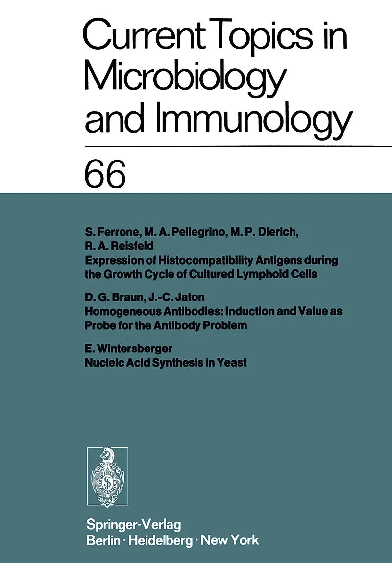 Inhalt Expression of Histocompatibility Antigens during the Growth Cycle of Cultured Lymphoid Cells. With 10 Figures.- Homogeneous Antibodies: Induction and Value as Probe for the Antibody Problem. With 14 Figures.- Nucleic Acid Synthesis in Yeast.- Author Ind...