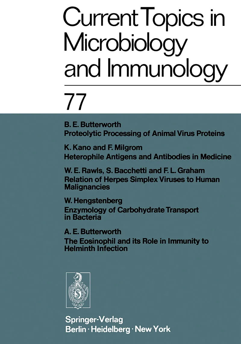 Inhalt Proteolytic Processing of Animal Virus Proteins.- Heterophile Antigens and Antibodies in Medicine.- Relation of Herpes Simplex Viruses to Human Malignancies.- Enzymology of Carbohydrate Transport in Bacteria.- The Eosinophil and its Role in Immunity to ...