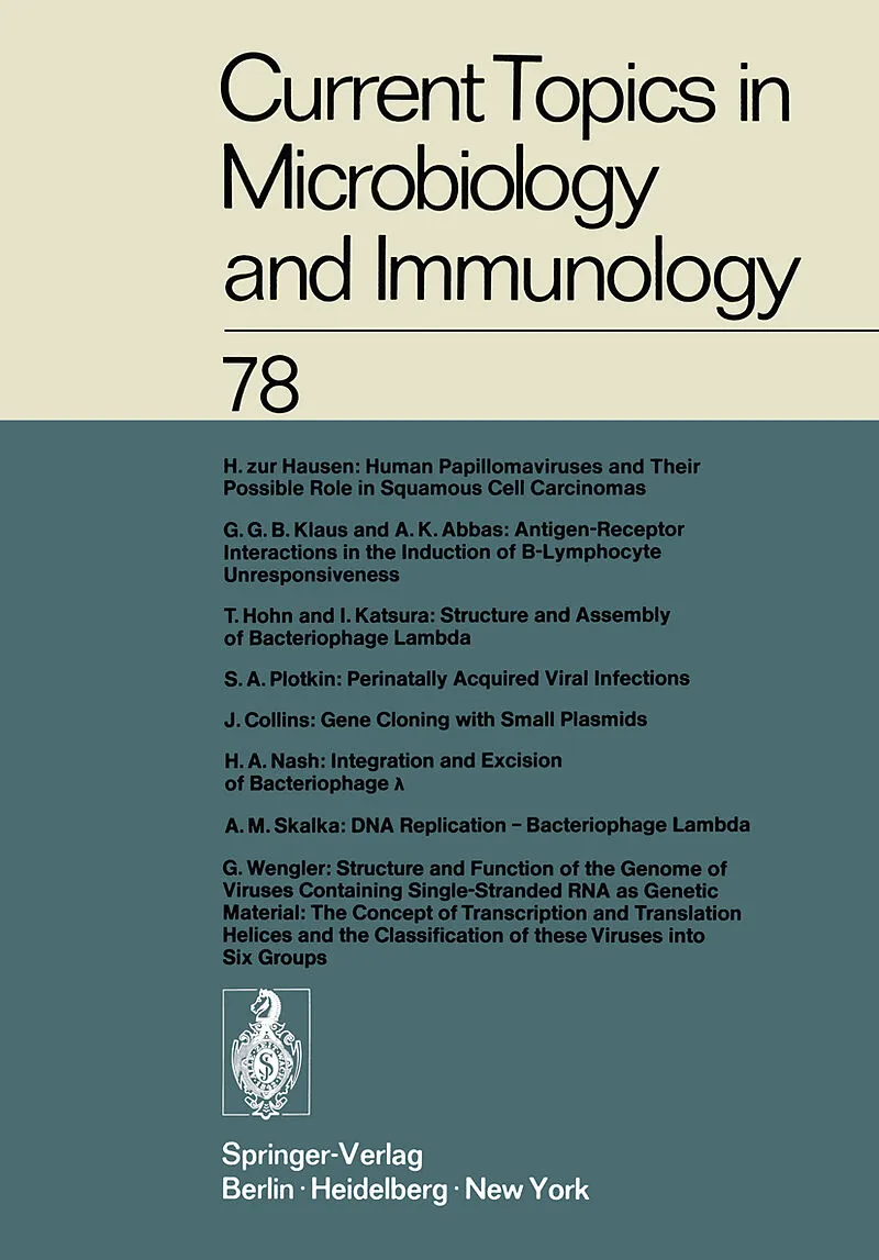Inhalt Human Papillomaviruses and Their Possible Role in Squamous Cell Carcinomas.- Antigen-Receptor Interactions in the Induction of B-Lymphocyte Unresponsiveness.- Structure and Assembly of Bacteriophage Lambda.- Perinatally Acquired Viral Infections.- Gene ...