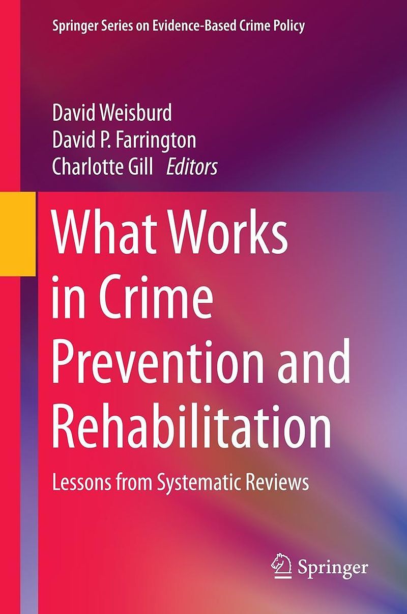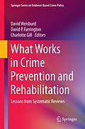 Chapter 1: Introduction: What Works in Crime Prevention? David Weisburd, David P. Farrington, and Charlotte Gill.- Chapter 2: Developmental and social prevention David P. Farrington, Friedrich Losel and Maria M. Ttofi.- Chapter 3: Community interventions Charlotte Gill.- Chapter 4: Situational prevention Kate J. Bowers and Shane D. Johnson.- Chapter 5: Policing Cody W. Telep and David Weisburd.- Chapter 6: Sentencing and deterrence Amanda E. Perry.- Chapter 7: Correctional programs David B. Wilson.- Chapter 8: Drug interventions Katy R. Holloway and Trevor H. Bennett.- Chapter 9: Qualitative data in systematic reviews *Mimi Ajzenstadt.- Chapter 10: Evidence mapping to advance justice practice Michael S. Caudy, Faye S. Taxman, Lienshang Tang andCarolyn Watson.- Chapter 11: Economic analyses Jacqueline Mallender and Rory Tierney.- Chapter 12: Conclusion: What Works in Crime Prevention Revisited *David Weisburd, David P. Farrington, and Charlotte Gill.