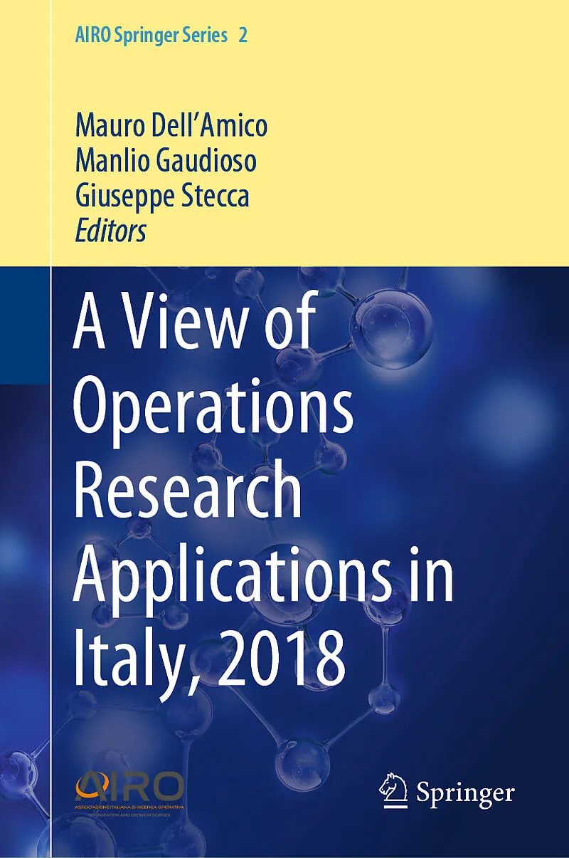 Part I - Logistics : 1 M. Bué et al., A two-phase approach for an integrated order batching and picker routing problem.- 2 T. Parriani et al., Creation of Optimal Service Zones for the Delivery of Express Packages.-3 L. Di Puglia Pugliese et al., Solving a three-dimensional bin-packing problem arising in the groupage process: application to the port of Gioia Tauro.- 4 T. Bacci et al., A new software system for optimizing the operations at a container terminal.- Part II - Product Design : 5 A. Credo et al., Design optimization of synchronous reluctance motor for low torque ripple.- 6 G. De Tommasi, A variant of the generalized assignment problem for reliable allocation of sensor measurements in a diagnostic system.- Part III - Production Planning and Scheduling: 7 L. Bertazzi and F. Maggioni, Forecasting Methods and Optimization Models for the Inventory Management of Perishable Products: the Case of La Centrale del Latte di Vicenza SpA.- 8 G. Giallombardo et al., Production scheduling and distribution planning at FATER S.p.A..- Part IV - Social Applications : 9 C. Arbib et al., IoT Flows: A Network Flow Model Application to Building Evacuation.- 10 M. Gentili et al., From Pallets to Puppies: Using Insights from Logistics to Save Animals.- 11 L. Lampariello, Improving social assistance services for minors and disabled people by using multiobjective programming.- Part V Transportation : 12 E. Fadda et al., An algorithm for the optimal waste collection in urban areas.- 13 M. Dell'Amico et al., A decision support system for earthwork activities in construction logistics.- 14 D. Ambrosino et al., A comparison of optimization models to evaluate the impact of fuel costs when designing new cruise itineraries.- 15 C. Ciancio et al., An Integrated Algorithm for Shift Scheduling Problems for Local Public Transport Companies.- 16 S. Carosi et al., A Tool for Practical Integrated Time-Table Design and Vehicle Scheduling in Public Transport Systems.
