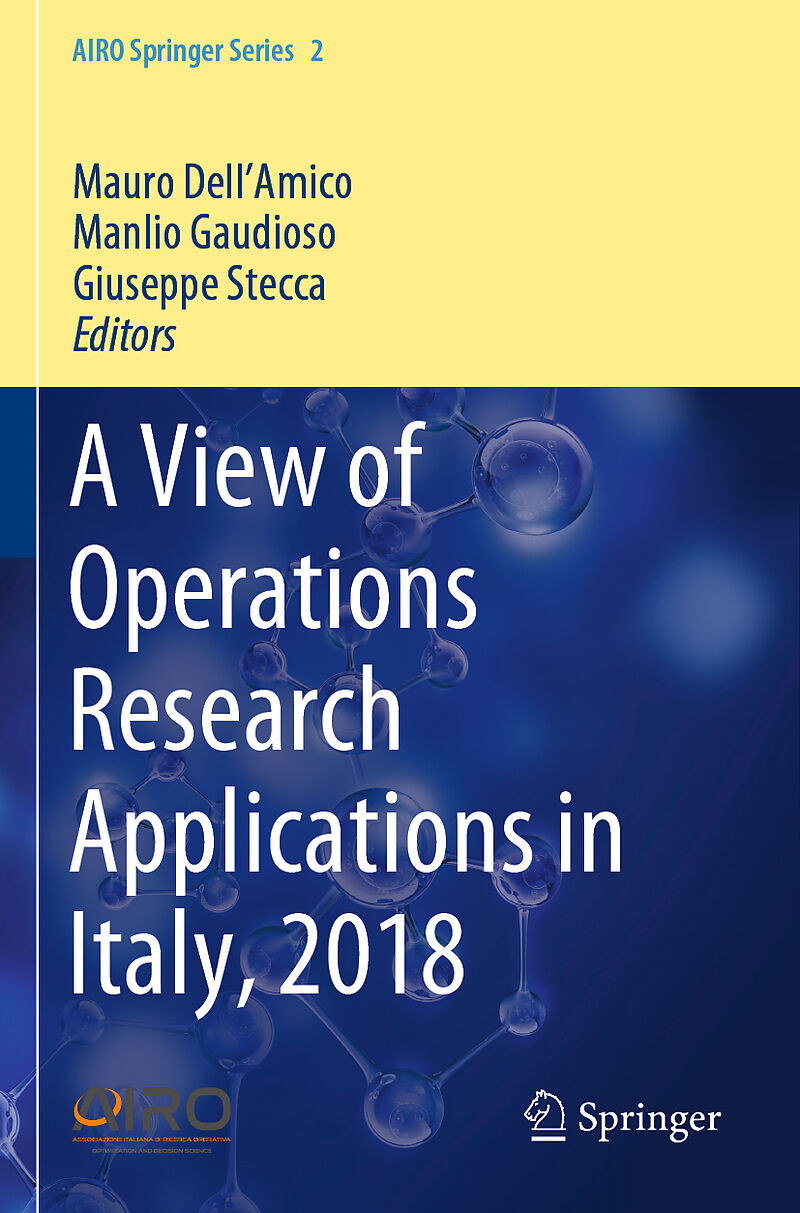 Part I - Logistics : 1 M. Bué et al., A two-phase approach for an integrated order batching and picker routing problem.- 2 T. Parriani et al., Creation of Optimal Service Zones for the Delivery of Express Packages.-3 L. Di Puglia Pugliese et al., Solving a three-dimensional bin-packing problem arising in the groupage process: application to the port of Gioia Tauro.- 4 T. Bacci et al., A new software system for optimizing the operations at a container terminal.- Part II - Product Design : 5 A. Credo et al., Design optimization of synchronous reluctance motor for low torque ripple.- 6 G. De Tommasi, A variant of the generalized assignment problem for reliable allocation of sensor measurements in a diagnostic system.- Part III - Production Planning and Scheduling: 7 L. Bertazzi and F. Maggioni, Forecasting Methods and Optimization Models for the Inventory Management of Perishable Products: the Case of La Centrale del Latte di Vicenza SpA.- 8 G. Giallombardo et al., Production scheduling and distribution planning at FATER S.p.A..- Part IV - Social Applications : 9 C. Arbib et al., IoT Flows: A Network Flow Model Application to Building Evacuation.- 10 M. Gentili et al., From Pallets to Puppies: Using Insights from Logistics to Save Animals.- 11 L. Lampariello, Improving social assistance services for minors and disabled people by using multiobjective programming.- Part V Transportation : 12 E. Fadda et al., An algorithm for the optimal waste collection in urban areas.- 13 M. Dell'Amico et al., A decision support system for earthwork activities in construction logistics.- 14 D. Ambrosino et al., A comparison of optimization models to evaluate the impact of fuel costs when designing new cruise itineraries.- 15 C. Ciancio et al., An Integrated Algorithm for Shift Scheduling Problems for Local Public Transport Companies.- 16 S. Carosi et al., A Tool for Practical Integrated Time-Table Design and Vehicle Scheduling in Public Transport Systems.