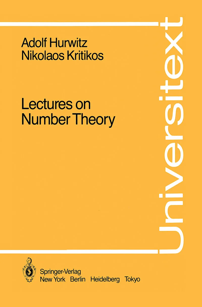 During the academic year 1916-1917 I had the good fortune to be a student of the great mathematician and distinguished teacher Adolf Hurwitz, and to attend his lectures on the Theory of Functions at the Polytechnic Institute of Zurich. After his death in 1919 ...During the academic year 1916-1917 I had the good fortune to be a student of the great mathematician and distinguished teacher Adolf Hurwitz, and to attend his lectures on the Theory of Functions at the Polytechnic Institute of Zurich. After his death in 1919 there fell into my hands a set of notes on the Theory of numbers, which he had delivered at the Polytechnic Institute. This set of notes I revised and gave to Mrs. Ferentinou-Nicolacopoulou with a request that she read it and make relevant observations. This she did willingly and effectively. I now take advantage of these few lines to express to her my warmest thanks. Athens, November 1984 N. Kritikos About the Authors ADOLF HURWITZ was born in 1859 at Hildesheim, Germany, where he attended the Gymnasium. He studied Mathematics at the Munich Technical University and at the University of Berlin, where he took courses from Kummer, Weierstrass and Kronecker. Taking his Ph. D. under Felix Klein in Leipzig in 1880 with a thes i s on modul ar funct ions, he became Pri vatdozent at Gcitt i ngen in 1882 and became an extraordinary Professor at the University of Konigsberg, where he became acquainted with D. Hilbert and H. Minkowski, who remained lifelong friends. He was at Konigsberg until 1892 when he accepted Frobenius' chair at the Polytechnic Institute in Z~rich (E. T. H. ) where he remained the rest of his 1 i fe.