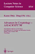 ASIACRYPT'98, the international conference covering all aspects of theory and application of cryptology and information security, is being held at Beijing Friendship Hotel from October 18 to 22. This is the fourth of the Asiacrypt conferences. ASIACRYPT'98 is ...ASIACRYPT'98, the international conference covering all aspects of theory and application of cryptology and information security, is being held at Beijing Friendship Hotel from October 18 to 22. This is the fourth of the Asiacrypt conferences. ASIACRYPT'98 is sponsored by the State Key Laboratory of Information Security (SKLOIS), University of Science and Technology of China (USTC), and the Asiacrypt Steering Committee (ASC), in cooperation with the International Association for Cryptology Research (IACR). The 16-member Program Committee organized the scientific program and considered 118 submissions. Of these, 32 were accepted for presentation. The authors' affiliations of the 118 submissions and the 32 accepted papers range over 18 and 13 countries or regions, respectively. The submitted version of each paper was sent to all members of the Program Committee and was extensively examined by at least three committee members and/or outside experts. The review process was rigorously blinded and the anonymity of each submission are maintained until the selection was completed. We followed the traditional policy that each member of the Program Committee could be an author of at most one accepted paper. These proceedings contain the revised versions of the 32 contributed talks as well as a short note written by one invited speaker. Comments from the Program Committee were taken into account in the revisions. However, the authors (not the committee) bear full responsibility for the contents of their papers.