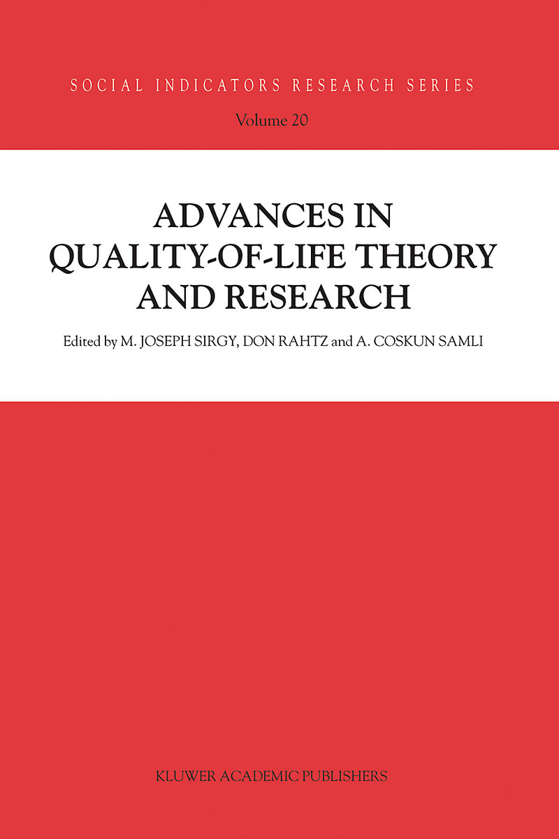 Advances in Quality-of-Life Theory and Research is relevant to quality-of-life researchers working in the areas of Social Medicine, Sustainable Development, Social Indicators Research and Health Psychology/Behavioral Medicine. This volume contains 14 chapters ...