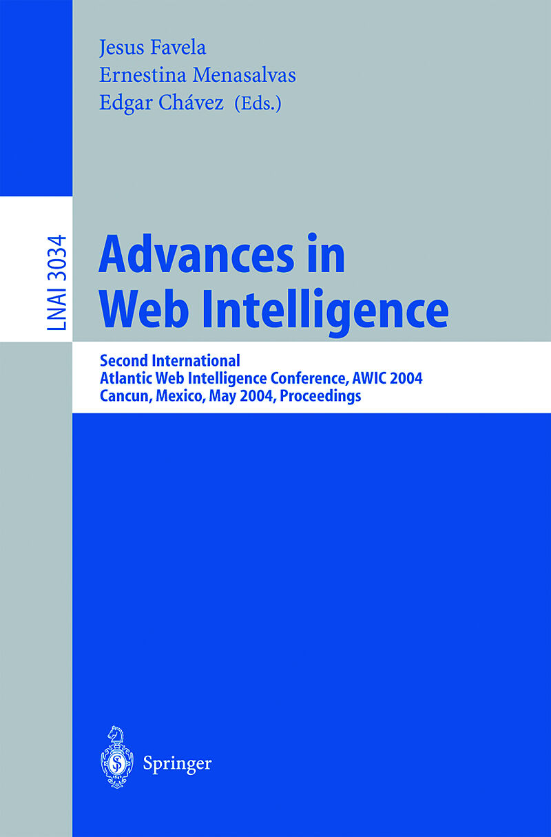 This volume constitutes the proceedings of the 2nd Atlantic Web Intelligence Conference(AWIC2004).TheconferencewasheldinthecityofCancun,Mexico, a setting that inspired lively discussions andre?ections onopen issues facing the ?eld of Web intelligence. TheAWICc...This volume constitutes the proceedings of the 2nd Atlantic Web Intelligence Conference(AWIC2004).TheconferencewasheldinthecityofCancun,Mexico, a setting that inspired lively discussions andre?ections onopen issues facing the ?eld of Web intelligence. TheAWICconferences havebeenmotivated by advancesinthe ?eld ofart- cialintelligenceandthechallengesfacingtheirapplicationtoWeb-basedsystems. With this second edition, AWIC provided a forum for specialists from di?erent disciplines of computer science to exchange their experiences and ideas in this growing ?eld of research. The selection of papers followed a strict, double-blind refereeing process by a renowned international committee. We received 57 contributions, with ?rst authors from 15 di?erent countries, from which 22 papers were selected to be presented and published in this proceedings volume. We thank all members of the Program Committee for their valuable reviews of the papers. In addition, we were pleased to have as invited speakers Dr. Prabhakar Raghavan, Chief Scientist and Vice President of Emerging Technologies in Verity, Inc. and Consulting Professor of Computer Science at Stanford Univ- sity, and Prof. C. Lee Giles, Davide Reese Professorof the School of Information Sciences and Technology at The Pennsylvania State University. Abstracts of their lectures are included in these proceedings. In putting together this conference, we had the pleasure of working with an outstanding group of people. We thank them all for their hard work on behalf of this conference. In particular we would like to thank Manuel Montes y Gomez, Director of the Mexico Research Centre of the Web Intelligence Consortium, Elisa Moran, Marcela Rodr ?guez, and Jorge Niebla.