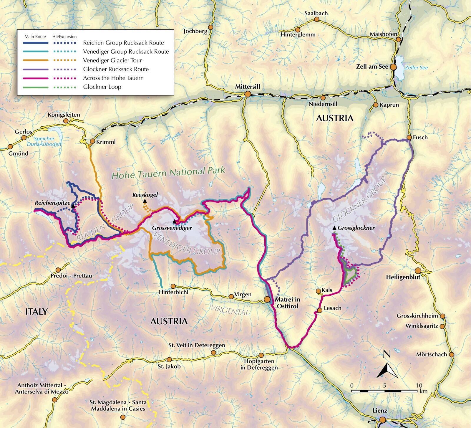 A guidebook to four treks in Austria's Hohe Tauern: the 61km Reichen Group Hut-to-Hut Rucksack Route, the 68km Venediger Group Hut-to-Hut Rucksack Route, the 78km Venediger Glacier Tour and the 99km Glockner Rucksack Route. Whereas the three rucksack routes r...