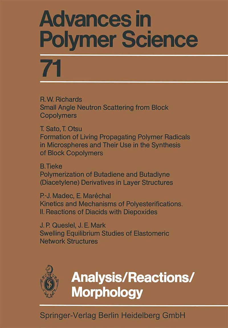 Inhalt Small angle neutron scattering from block copolymers.- Formation of living propagating polymer radicals in microspheres and their use in the synthesis of block copolymers.- Polymerization of butadiene and butadiyne (diacetylene) derivatives in layer str...