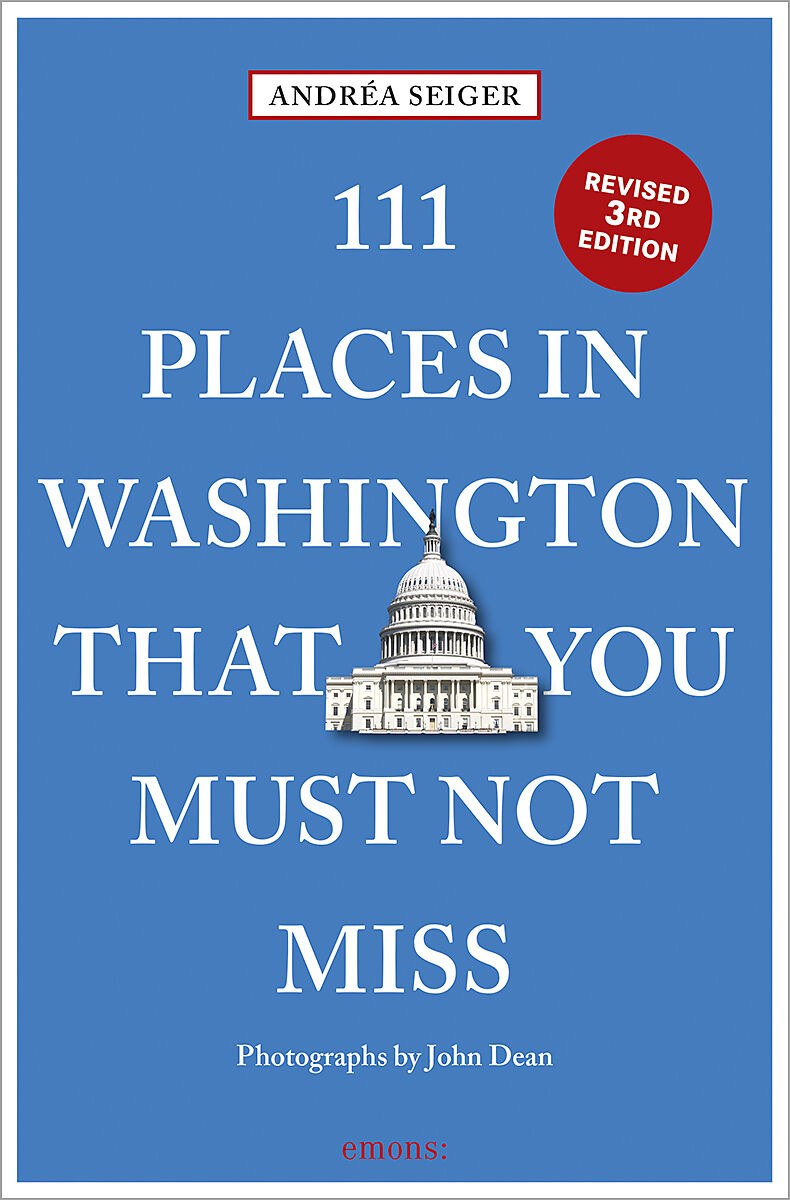 50 States Bike Route Cycle through every state in a single day | 10 56 Signers Memorial Chill out with the Founding Fathers | 12 African American Civil War Museum Telling the ancestors’ stories Marquett, a young | 14 Albert Einstein Memorial I myself should be dead already but I’m still here | 16 American Geophysical Union Building An architectural and engineering playground | 18 Anacostia Park Roller Rink This is how we roll | 20 Art-o-Mat Art is a much better addiction | 22 Arts Walk Art and poetry with beer | 24 Bald Eagle Nest Mr. President and LOTUS among the azaleas | 26 Bartholdi Fountain The fountain cousin of the Statue of Liberty | 28 Bathyscaphe Trieste Dive to the deepest part of the ocean | 30 The Big Chair A neighborhood symbol | 32 Black Cat Alt music and family tradition | 34 Bladensburg Dueling Grounds Where gentlemen killed each other | 36 Booth’s Derringer Assassination at the theater | 38 Boundary Stone NW6 One of the oldest boundary markers of city limits | 40 The Canterbury Pulpit Martin Luther King’s last sermon | 42 Capital Pool Checkers Crown Me! | 44 Capital Slave Pens Twelve years a slave in the cradle of freedom | 46 Caruso Florist Not just any flower shop | 48 Cedar Hill Frederick Douglass had the best views | 50 Ching Ching Cha Taking tea in the Chinese tradition | 52 Chuck Brown Park A shrine to the Godfather of Go-Go | 54 Colonel Dahlgren’s Leg Buried with full military honors | 56 Crypt of James Smithson Laid to rest in his legacy | 58 Culture House DC Abandoned church becomes an art centerpiece | 60 Da Vinci’s de’ Benci She flew in a first-class window seat | 62 Dance Place This is dance central | 64 DC Fire and EMS Museum City history through a firefighter’s lens | 66 Department of the Interior Murals Painting our American lives | 68 Dupont Circle Fountain Hangin’ with the Rear Admiral | 70 Dupont Underground From tracks to treasure | 72 Earliest Cherry Trees They survived blight and keep on blooming | 74 Electronic Superhighway Neon ode to the American road trip | 76 Evalyn Walsh McLean House Where the Hope Diamond owner spent her teens | 78 Exorcist Steps & Stories Terrifying and head-spinningly steep | 80 FDR Desk Memorial A minor yet mighty presidential memorial | 82 Fort Stevens Civil War skirmish in the capital | 84 Franciscan Monastery Catacombs, martyrs, and a mummified child | 86 Frank Kameny Gravesite Gay rights pioneer is not buried here | 88 Gallaudet University The epicenter of the deaf world | 90 Game Fish Look at what we hooked! | 92 George Mason Memorial A neglected Founding Father | 94 Georgetown Flea Market Upscale picking | 96 Georgetown Labyrinth Contemplation along the waterfront | 98 Gorby Intersection Gorbachev stops traffic and thaws the Cold War | 100 Harriet Tubman’s Shawl Gift from a queen to a fearless warrior for freedom | 102 Hillwood Breakfast Taste testing with Marjorie Merriweather Post | 104 Howard Theatre Where the greats have played | 106 International Spy Museum Spy pigeons and their covert critter colleagues | 108 Iron Gate Restaurant A young hooker takes down a Soviet defector | 110 JFK Thank You Plaque With gratitude from frozen newsmen | 112 John Philip Sousa Home Marching with the spirits of great Washingtonians | 114 Julia Child’s Kitchen If you’re afraid of butter, use cream | 116 Kenilworth Aquatic Gardens An age-old dance of wind, water, and land | 118 Key Bridge Boathouse Paddling on the Potomac | 120 KGB Double Agent Escape Where spy met spy | 122 Khalil Gibran Memorial Beauty shall rise with the dawn | 124 LeDroit Park A historic bastion of African-American influencers | 126 Letelier-Moffitt Memorial Assassination on Embassy Row | 128 Lincoln Life Masks A civil war can change the face of a man | 130 Lincoln’s Cottage He wrote the Emancipation Proclamation here | 132 The Longest Protest Civic action facing the White House | 134 Longest City Bus Tour The $2 city tour | 136 The Magic Tree Box A fairy world at your feet | 138 Maine Avenue Fish Market Crabs, oysters, and fried fish sammiches | 140 Mansion on O Street Wonder, through secret doorways | 142 The Market Lunch Blue bucks for breakfast | 144 Mexican Cultural Institute Stairway to vibrant colors and rich traditions | 146 Millennium Stage Free entertainment 365 days a year Nearly every | 148 Missing Soldiers Office Fate lent a hand – and a letter – to save history | 150 Mitsitam Café It means, “Let’s eat!” | 152 MLK Time Capsule A skateboarder never notices | 154 Mount Zion Cemetery A stop on the Underground Railroad | 156 Mumbo Sauce at Yum’s The foodstuff of urban legend | 158 New Hampshire Period Room A children’s attic playroom | 160 Newton’s Apple Tree From the roots of science history | 162 Oldest Mini-Golf Course The most important shot in golf is the next one | 164 Omni Shoreham Ghost Suite Apparition in residence | 166 Orphée Mural Marc Chagall’s mythical mosaic | 168 Owney the Railway Mascot The dog who traveled the world by mail transport | 170 Perry’s Drag Brunch Hello, Gorgeous! | 172 Peterbug Shoe Academy Not your average cobbler shop | 174 Planet Word Privies Flush with bathroom humor | 176 Prairie Dogs Cutest zoo animals, and natives too | 178 The President’s Walk The failed assassination of President Reagan | 180 Riggs Bank Building Money launderers to the dictators of the world | 182 Ripley Center Mural Illusions of an ancient city | 184 Rock Creek Park Hors…