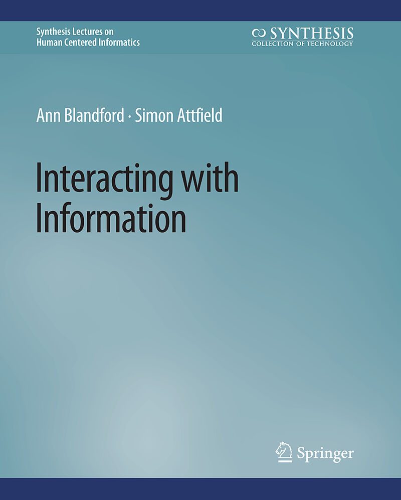 Ann Blandford is Professor of Human-Computer Interaction in the Department of Computer Science at UCL, and Director of UCL Interaction Centre. Her research focuses on amplifying human capabilities through design, including work on minimising cognitive slips and on sensemaking. An important focus of her work has been on the use and usability of Digital Libraries, taking a multidisciplinary approach that considers the design of technology, the knowledge and motivations of users, and the context within which information work takes place to develop a rich understanding of the design and use of such systems. She has been technical Chair for conferences including IHM-HCI 2001, HCI 2006, and NordiCHI 2010, and she has edited special issues of the International Journal of Digital Libraries and Information Processing and Management.Simon Attfield is a Senior Research Associate and Lecturer at UCL Interaction Centre, University College London, where he has worked since receiving his PhD in 2005.His research interests lie in understanding how people think and work with information and what this means for the design of human-centred interactive systems. He has conducted numerous field and lab studies in information interaction, including studies of national news organizations (The Times, ITN), legal firms (Richards Butler, Freshfields Bruckhaus Deringer) and NHS healthcare settings. He has also consulted to news, legal and medical information providers; published internationally in numerous peer-reviewed academic outlets; presented research internationally to both academic and commercial audiences; and served on review committees for numerous international journals, conferences and workshops.