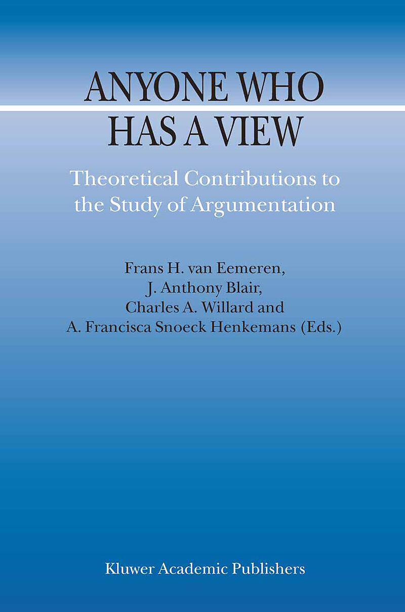 This volume of the Argumentation Library contains a collection of twenty-six theor etical contributions to the study of argumentation. Together they provide an over view of recent developments in the theory of argumentation which does justice to the theoretica...This volume of the Argumentation Library contains a collection of twenty-six theor etical contributions to the study of argumentation. Together they provide an over view of recent developments in the theory of argumentation which does justice to the theoretical variety in the field. InAnyone Who Has a View, the subject of argu mentation is approached from different angles. Both the formal and informal logical approaches and the rhetorical and communicative approaches arc represented in various ways. We arc convinced that the collection of essays as a whole will be of interest not only to those engaged directly in the study of argumentation, but also to scholars from a variety of disciplines who arc interested in the recent developments in this field. The book opens with an essay by the informal logician Robert C. Pinto. For all the differences between them, James B. Freeman, Harvey Siegel, Ralph H. Johnson, Hans V. Hansen, and J. Anthony Blair are also prominent members of that move ment. Some informal logicians either eschew or simply do not use formal methods in their approach to argumentation, while others, such as David Hitchcock, use both formal and informal methods. Erik C.W. Krabbe is a logician who proudly defends a formal dialectical approach to argumentation. Daniel H. Cohen, Frans H. van Eemeren, Peter Houtlosser, Fred J. Kauffeld, C. Scott Jacobs, Christian Kock, Christian Plantin, Sorin Stati, Chris Reed, Douglas N.