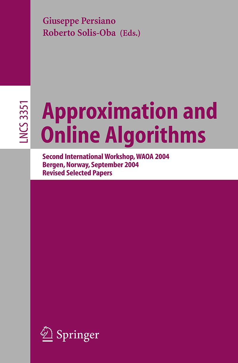 The 2nd Workshop on Approximation and Online Algorithms (WAOA 2004) focused on the design and analysis of algorithms for online and computationally hard problems. Both kinds of problems have a large number of applications arising from a variety of ?elds. WAOA ...