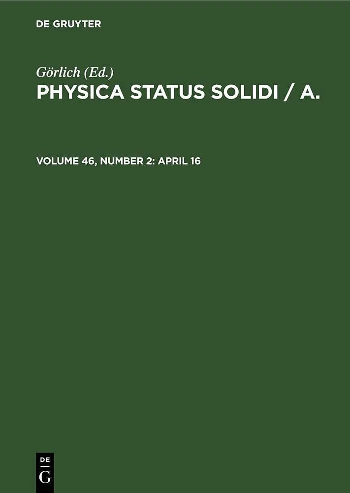 Frontmatter -- Contents -- Original Papers -- The Orientation Dependence of Dislocation Internal Friction in Real Crystals -- Flotation Study of Ca2+ and Sr2+ Precipitation in KCl Crystals -- Growth Rate Anisotropy and Kinetic Coefficients of Vicinal Faces at LPE Garnet Films -- An Electron Diffraction Study of Phases in the Cu^S System -- Measurement of Stresses in Thin Films on Single Crystalline Substrates -- Chemical Bond and Related Properties of Si02 IV. Structure of Amorphous SiOa1 -- An Automated FSA Ellipsometer System for in Situ Investigations -- On the Conductivity of the Si-Thermal Si02-Electrolyte System in Superhigh Electric Fields -- Magnetoelastic Interaction Energy of a Cubic Ferromagnet in an Arbitrary Coordinate System2 -- A New Type of Deformation Modulated Superstructure in lT-YSe2 and Its Relation with Other Superstructures in Transition Metal Dichalcogenides3 -- Etude des propriétés magnétiques du composé SrNd2Fe207 Détermination des structures magnétiques par diffraction neutronique -- On the Diffusion Process of Point Defects in the Stress Field of Edge Dislocations2 -- Pyroelectric Properties of Pb(Ti, Zr, [Fei/2Tai/2])08 Polycrystalline Solid Solutions -- Theoretical Study oi the Depletion-Layer Capacitance in Abrupt p-n Semiconductor Junctions -- Subthreshold Irradiation Effects in Quenched Platinum -- Electrooptic Switching Anomalies in Ferroelectric TGS -- Mutation of Vacancies to Divacancies by Helium Trapping in Molybdenum -- Deuterium Resonance of KD3(Se08)2 Single Crystals above and below Phase Transition -- A Trigonal Distortion Field for Substitutional^ Dissolved Bi Atoms in Pb -- X-Ray Diffraction on a Crystal Containing a Misfit Boundary (I) -- Phenomenological Approach to Structural Phase Transitions in Trigonal Double Molybdates and Tungstates -- Space Charge Limited Current Measurements in ZnIn2S4 -- pSi-nCdS Heterojunction Photodetectors -- The Anisotropic Behavior of Poisson's Ratio, Young's Modulus, and Shear Modulus in Crystals with Different Symmetries -- Defect Structures in Amorphous Germanium Films -- ESR Studies of a Diacetylene Polymer III. Thermal History Effects and Temperature Dependence of Polycrystalline Samples2 -- On Annealing-Induced Prismatic Dislocation Loops and Electrical Changes in Heavily Te-Doped GaAs2 -- The Imaging of Slip Bands in Nickel -- Dislocation Networks in Twin Boundaries -- Diffusion des électrons par un cristal -- The Calculations of the Heat of Crystallization and Bulk Modulus of Glassy Iron -- Mössbauer Study of the Fast Magnetization Reversal Forced in Permalloy and Invar by an External RF Magnetic Field -- M a g n e t i c P r o p e r t i e s of M n E r 2 S 4 , M g E r 2 S 4 , a n d M n ^ M g i - J ^ -- On the Recovery of Quenched and Irradiated Dilute Al-Li Alloys -- On Electrolytic Amorphous Antimony -- On the Density of Misfit Dislocations in Doubleand Triple-Layer Heterojunction Devices -- Effect of Heavy Doping of ZnSe Crystals with Indium in Creating Compensating Acceptors -- Properties of Zn^Cdi-^S Films Prepared by Solution Spray Technique -- The Anomalous Photovoltaic Effect and Photoconductivity in Ferroelectric -- Short Notes -- "In situ" Observation of Dislocation Generation from Grain Boundary in Aluminium -- Influence of Cr3+ Ions on the Magnetooptical Properties of Cobalt Ferrite -- Electrical Resistivity and Transition Temperature of Highly Disordered Nb3Sn -- Energy Distribution of Electrons Emited from MIM Thin-Film Sandwich Cathodes -- Point-Defect Relaxations in Dilute Iron-Nickel Alloys after Low-Temperature Neutron Irradiation -- The Crystal and Magnetic Structure of CeMn2Si2 -- On the Analysis of the Angular Correlation Data from Positron Annihilation in Metals -- Uniaxial Magnetic Anisotropy Induced in a Compression Deformed Iron Single Crystal -- X-Ray Critical Scattering in NaN02 -- Susceptibility of DyP04 near the Magnetic Phase Boundaries -- Brightness Waves of Electroluminescence in ZnO: La Phosphors -- Photo