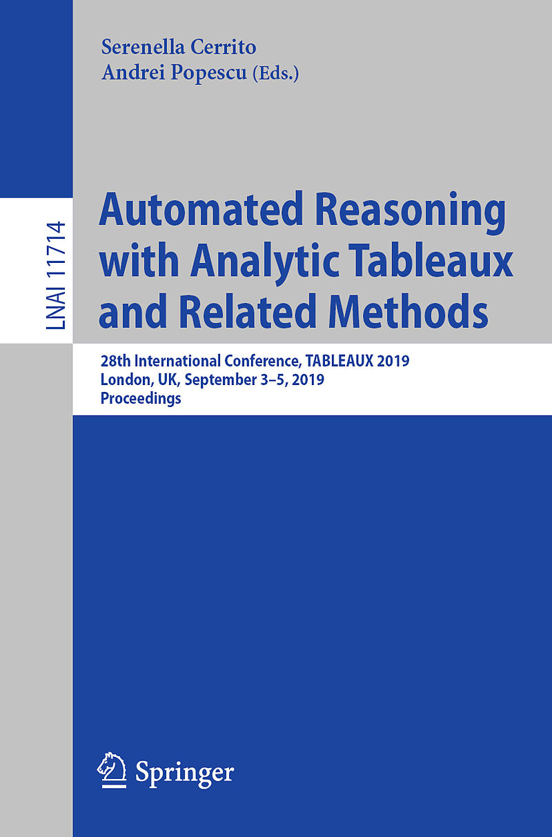 This book constitutes the proceedings of the 28th International Conference on Automated Reasoning with Analytic Tableaux and Related Methods, TABLEAUX 2019, held in London, UK, in September 2019, colocated with the 12th International Symposium on Frontiers on...