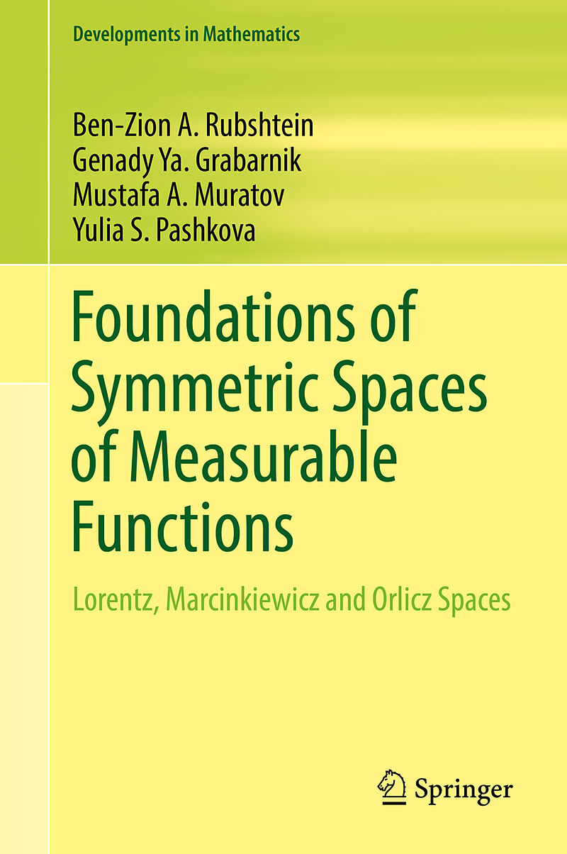 Key definitions and results in symmetric spaces, particularly L p , Lorentz, Marcinkiewicz and Orlicz spaces are emphasized in this textbook. A comprehensive overview of the Lorentz, Marcinkiewicz and Orlicz spaces is presented based on concepts and results o...