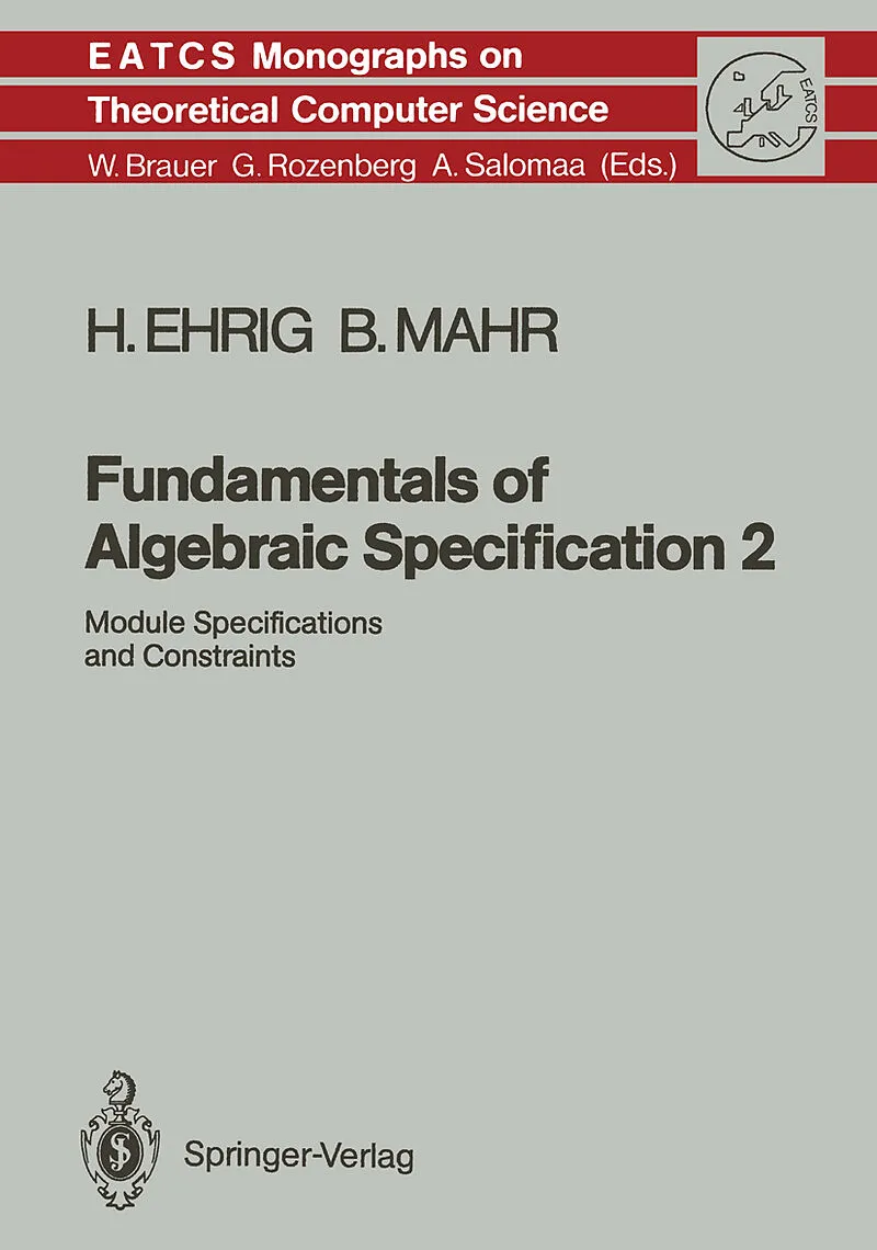 Since the early seventies concepts of specification have become central in the whole area of computer science. Especially algebraic specification techniques for abstract data types and software systems have gained considerable importance in recent years. They ...Since the early seventies concepts of specification have become central in the whole area of computer science. Especially algebraic specification techniques for abstract data types and software systems have gained considerable importance in recent years. They have not only played a central role in the theory of data type specification, but meanwhile have had a remarkable influence on programming language design, system architectures, arid software tools and environments. The fundamentals of algebraic specification lay a basis for teaching, research, and development in all those fields of computer science where algebraic techniques are the subject or are used with advantage on a conceptual level. Such a basis, however, we do not regard to be a synopsis of all the different approaches and achievements but rather a consistently developed theory. Such a theory should mainly emphasize elaboration of basic concepts from one point of view and, in a rigorous way, reach the state of the art in the field. We understand fundamentals in this context as: 1. Fundamentals in the sense of a carefully motivated introduction to algebraic specification, which is understandable for computer scientists and mathematicians. 2. Fundamentals in the sense of mathematical theories which are the basis for precise definitions, constructions, results, and correctness proofs. 3. Fundamentals in the sense of concepts from computer science, which are introduced on a conceptual level and formalized in mathematical terms.