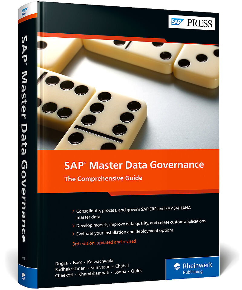 Manage your SAP S/4HANA and SAP ERP master data with this hands-on guide! Walk through implementing, configuring, and using SAP Master Data Governance, both on-premise and in the cloud! Whether your organization requires custom applications or works with out-o...Manage your SAP S/4HANA and SAP ERP master data with this hands-on guide! Walk through implementing, configuring, and using SAP Master Data Governance, both on-premise and in the cloud! Whether your organization requires custom applications or works with out-of-the-box central governance, consolidation, and mass processing, you'll find detailed instructions for every step. From data modeling to data replication, this comprehensive guide will help you master your data!a. ModelingCreate and extend data models by mastering entity types, attributes, hierarchies, and other elements. Use the floorplan manager for UI modeling and explore the use of change requests and workflows in process modeling.b. Data Quality and ReplicationEnsure your organization is using quality data in its operations. Learn to remediate and your enrich data. Then, move that data to where it needs to be in your system using tools like the data export framework, data import frameworks, and entity-based upload/download.c. Integrations and ExtensionsPut SAP MDG to use in your entire landscape by integrating with SAP Integration Suite, Central Finance, SAP Product Lifecycle Management, SAP Ariba, and more. Explore SAP MDG's quick start options and complementary solutions from SolEx.Highlights:On-premise and cloud deploymentData modelingProcess modelingData qualityData replicationData migrationConsolidationOperationsMass processingIntegrationsExtensionsAnalytics