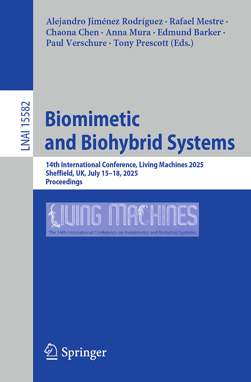 .- Bioinspired robotics and biohybrids. .- Thermo-responsive closing and reopening artificial Venus Flytrap utilizing shape memory elastomers. .- Biology Meets Design: From Observation to Computational Design through Interdisciplinary Approaches in Bio-Inspired Design. .- A Low-Cost Split-Belt Treadmill for Studying Robotic Inter-Limb Coordination. .- Dual-modal Biohybrid Origami Robot Actuated by Selective Skeletal Muscle Activation. .- A Magnetically Actuated Crank-Slider Mechanism Embedded in a Swallowable Capsule. .- Design and Validation of a Robotic Cat Hindlimb. .- The Role of Passive Mechanics in Asymmetrically Actuated Bioinspired Joints. .- Design and Control of a Rat Robot. .- Biologically inspired collision avoidance on a 2-wheeled robot using elementary movement detectors. .- Sensorimotor control of motor dynamics adaptations: a computational study on a human simulated arm. .- Spike Activations: A Method to Produce a Continuum of Mean Forces in BPAs. .- Bio-inspired Open Knee Joint with Ligamentous Constraints and Antagonistic Actuation. .- PB&J: Peanut Butter and Joints for Damped Articulation. .- Hitting the ’Gym’: Reinforcement Learning for Control and Co-design of Exercise-Strengthened Biohybrid Robots in Simulation. .- Soft robotics. .- Design and development of an electronics-free earthworm robot. .- Model to Model: Understanding the Venus Flytrap Snapping Mechanism and Transferring it to a 3D-printed Bistable Soft Robotic Demonstrator. .- A Bioinspired Aquatic Machine Mimicking Water Caltrop. .- Investigating HASELs Actuators for Variable Stiffening in Soft Continuum Robots. .- Renewable Self-Folding Origami Constructed from Bioengineered Bacterial Cellulose. .- A Highly Articulated Backbone for Soft Snake Robots. .- Applications and machine learning. .- When Plants Respond: Electrophysiology and Machine Learning for Green Monitoring Systems. .- Continual learning-based neuro-plausible framework for predictive maintenance in complex engineering systems. .- Training Neural Networks by Optimizing Neuron Positions. .- Benchmarking ANN-to-SNN Conversion: Dataset-dependent Analysis of Accuracy, Latency, and Spike Efficiency. .- Transforming Origami Sculpture for Exhibition at Art Festival. .- Cognitive and computational neuroscience. .- Are liquids part of embodiment?. .- A Framework for the Examination of Awareness in Artificial Systems. .- A biomimetic collision detection visual neural model coordinating self-and-lateral inhibitions. .- The Awareness Attribution Scale: Development, Validation, and Short-Form Reduction. .- Trap avoidance: The Potential Neural Computations Underlying Integration of Appetitive and Aversive Visual Memories in Insect Navigation. .- Mismatched Partners in Human-Robot Interaction: Biomimetic Insights on Aligning Internal States with External Expressions. .- Emotion Perception in Synthetic Aging: Divergent Insights from Human Perception and Algorithms. .- Allostatic Control of Persistent States in Spiking Neural Networks for Perception and Computation. .- Spike Timing Dependent Plasticity Organizes Type Ia Muscle Afferents in a Synthetic Nervous System. .- Disentangling Grasp-Object Representations in the Latent Space: Toward Brain-like Affordances for Machines. .- Cybernetic Intervention in Stroke Neurorehabilitation. .- Navigation, sensors, and perception. .- Optical Waveguide-based Spider Web Enables Resilient Impact Detection and Localization. .- Visual Homing in Outdoor Robots Using Mushroom Body Circuits and Learning Walks. .- Applying familiarity taxis to route and central place navigation tasks. .- Investigating the potential for insect place learning using multi-scale CNNs. .- Navigating temporally changing magnetic environments using combinations of magnetic field properties. .- Efference copy control for MIMO systems with multiple different time delays. .- The impact of realistic eye anatomy on inse