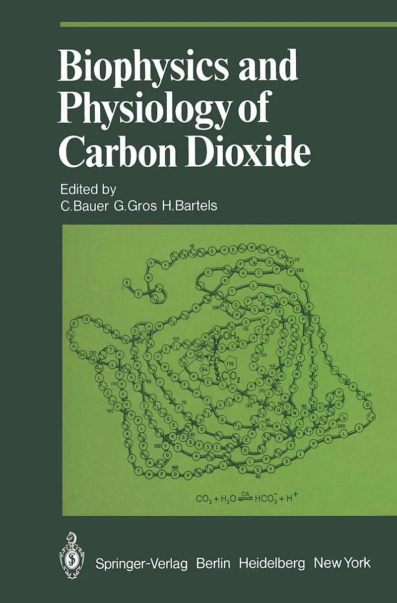 Chemical Reactions of CO2 in Water.- Chemical Reactions of CO2 in Water.- Facilitated Diffusion of CO2.- Facilitation of CO2 Through Layers with a Spatial Distribution of Carbonic Anhydrase.- Facilitated Diffusion of CO2 and Carbonic Anhydrase Activity.- Mechanisms of Facilitated CO2 and H+ Diffusion in Protein Solutions.- The Effect of Diffusion Potentials on Facilitated CO2 Diffusion.- Evidence for Facilitated Transport of CO2 in Muscle Tissue.- Carbamate Reactions of Proteins.- The Binding of CO2 to Human Deoxyhemoglobin: An X-Ray Study Using Low-Salt Crystals.- The Determination of CO2 Bound to Hemoglobin as Carbamate.- Phylogeny and Physiological Significance of Oxygen-Linked CO2 Binding in Hemoglobin.- The Carbamate Reaction with Proteins: Observation by 13C-NMR and Evaluation of Structural Consequences.- The Measurement of the CO2 Hb Binding Curve of Human Hemoglobin by 13C-NMR Spectrometry.- Formation and Physiological Role of Carbamino Adducts of Angiotensin, Bradykinin, and S-Methylglucagon.- Interaction Between Hemoglobins, CO2 and Anions.- The Influence of CO2 on the First Binding Constant of Oxygen to Human Hemoglobin A0.- Carbonic Anhydrase Structure and Function.- Current Concepts of the Mechanism of Action of Carbonic Anhydrase.- Some Structural Aspects of Carbonic Anhydrase.- Primary Structure of Carbonic Anhydrases.- Evolution of Structure and Function in the Carbonic Anhydrase Isozymes of Mammals.- Carbonic Anhydrase Activity in Intact Red Cells as Measured by Means of 18O Exchange Between CO2 and Water.- Crystal Structure of Carbonic Anhydrase.- Kinetics and Mechanistic Implications of CO2 Hydration Activity of Human Erythrocyte Carbonic Anhydrases.- Models for Metal Ion Function and Evolution of the Catalytic Step in Carbonic Anhydrase.-Consequences of Metal Ion Substitutions in Human Carbonic Anhydrase B. A Carbon-13 Nuclear Magnetic Resonance Comparative Study.- Rate-Limiting Steps in the Catalytic Action of Carbonic Anhydrase.- The pH-Independence of Carbonic Anhydrase Activity: Apparent pKa Due to Inhibition by HSO4?.- Role of Buffer in Catalysis of the Hydration of CO2 by Carbonic Anhydrase.- 35CI and 81Br Nuclear Magnetic Resonance Studies of Carbonic Anhydrase.- NMR-Studies of Carbonic Anhydrase.- CO2 Exchange and Carbonic Anhydrase in Respiratory Systems.- Cl?and HCO3? Movements Across the Red Blood Cell Membrane.- The Rate Limiting Event in the Depletion of 18O from CO2 in Red Cell Suspensions.- Kinetics of CO2 Uptake by Red Cells.- Intravascular End-Capillary CO2-H+ Disequilibrium.- Changes in pH and $${{\text{P}}{C{O_2}}}$$ with Time in Pulmonary Post-Capillary Blood in Cats.- Kinetics of Acid-Base Parameters of Blood After Respiratory and Metabolic Disturbances.- Carbonic Anhydrase in Lung Tissue.- Pulmonary Capillary Carbonic Anhydrase.- Can CO2 Be Actively Eliminated by the Lungs?.- Experimental Results on Gas-Blood CO2 Equilibrium in Lungs.- Intracapillary CO2 Gradients.- Contribution of Red Cell-Plasma H+ Disequilibrium to Alveolar-Blood $${{\text{P}}{C{O_2}}}$$ Differences During Rebreathing.- Diffusion Limitation in Alveolar-Capillary CO2 Transfer in Human Lungs: Experimental Evidence from Rebreathing Equilibration.- Physiological Consequences of Carbonic Anhydrase Inhibition During Rest and Exercise, and on the Bohr Effect.- CO2 Transport and Carbonic Anhydrase in Placenta, Muscle and Calcium-Mobilizing Tissues. Localization of Carbonic Anhydrase.- Placental CO2 Exchange.- Transfer of Bicarbonate in a Hemochorial Placenta.- Recent Developments in Carbonic AnhydraseLocalization: Occurrence of Carbonic Anhydrase in Calcium-Mobilizing Tissues.- Arguments for and Against the Histochemical Carbonic Anhydrase Test.- Activity and Properties of Carbonic Anhydrase in Striated Muscle.- CO2 Transport and Carbonic Anhydrase in Kidney and Brain.- Significance of Carbonic Anhydrase for HCO3? Absorption and H+ Secretion in Renal Tubules.- Formation and Ionic Composition of Cerebrospinal Fluid: The Role of Carbonic Anhydrase.- Autoregulation of CSF H+ Activity.- Transients and Steady State of Chloride-Bicarbonate Relationships of Brain Extra-Cellular Fluid.- List of Participants.