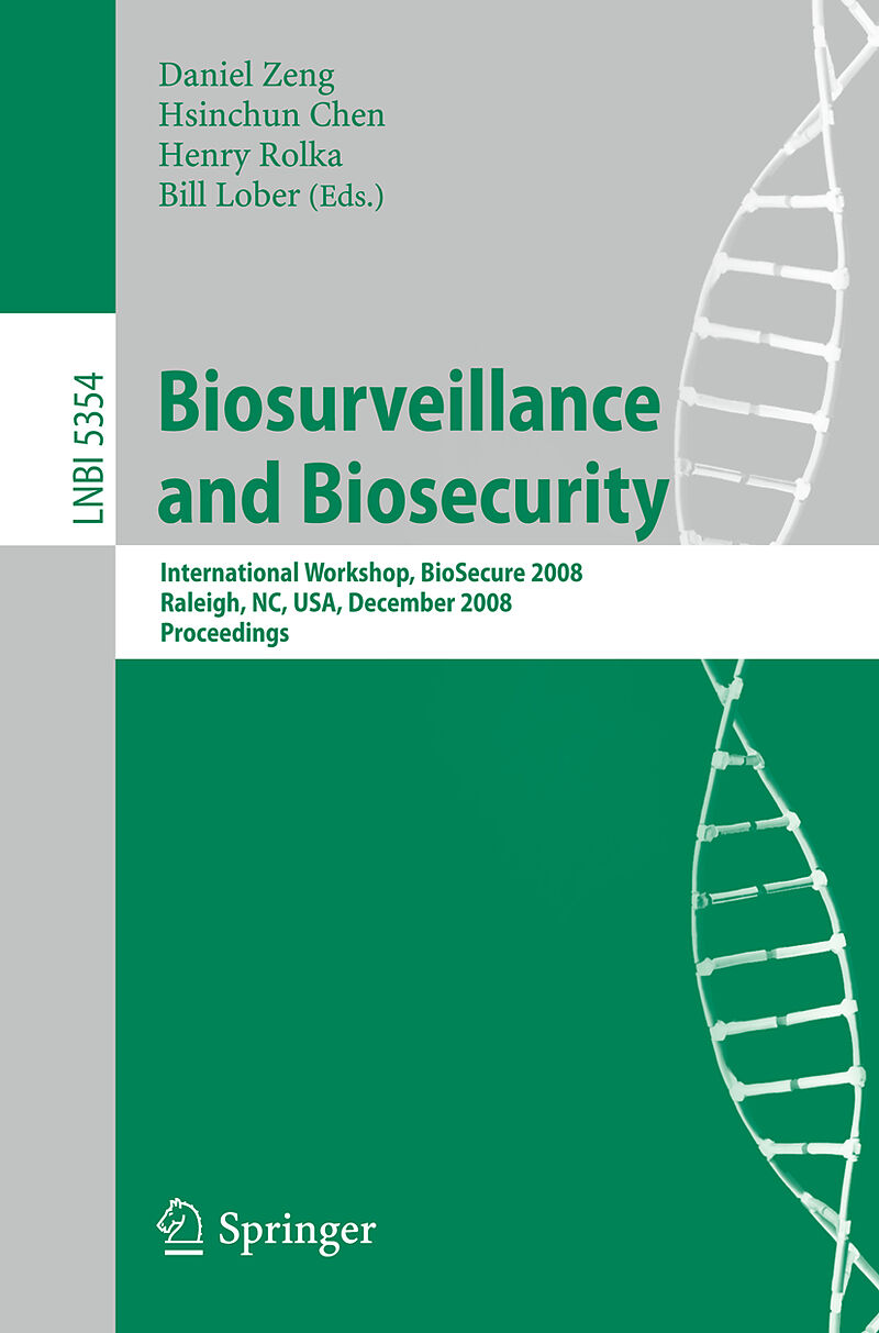 This book constitutes the refereed proceedings of the International Workshop on Biosurveillance and Biosecurity, BioSecure 2008, held in Raleigh, NC, USA, in December 2008. The 18 revised full papers presented together with one invited paper were carefully rev...This book constitutes the refereed proceedings of the International Workshop on Biosurveillance and Biosecurity, BioSecure 2008, held in Raleigh, NC, USA, in December 2008. The 18 revised full papers presented together with one invited paper were carefully reviewed and selected from numerous submissions. The papers are organized in topical sections on informatics infrastructure and policy considerations; network-based data analytics; biosurveillance models and outbreak detection; model assessment and case studies; environmental biosurveillance and case studies.