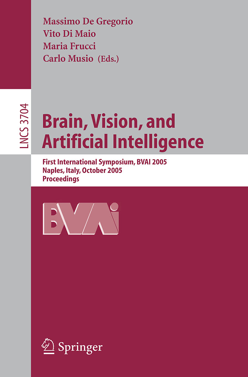 The 1st International Symposium on Brain, Vision & Arti?cial Intelligence (BVAI, Naples, Italy, October 19 21, 2005) was a multidisciplinary symposium aimed at gathering scientists involved in study of the Brain, Vision and Intel- gence, from both the natu...The 1st International Symposium on Brain, Vision & Arti?cial Intelligence (BVAI, Naples, Italy, October 19 21, 2005) was a multidisciplinary symposium aimed at gathering scientists involved in study of the Brain, Vision and Intel- gence, from both the natural and arti?cial points of view. The underlying idea was that to advance in each of the above research topics, integration with and attention to others is necessary. The overall rationale of the BVAI symposium wasbasedonamultidisciplinary approachofbiophysicsandneurobiology,visual and cognitive sciences and cybernetics, dealing with the interactions of natural and arti?cial systems. BVAI was conceived and organized by a group of researchers active in the BVAI topics of the Institute of Cybernetics E. Caianiello of the Italian National Research Council, Pozzuoli, Naples (ICIB-CNR), with the support of the Italian Institute for PhilosophicalStudies (IISF), and the help of the Mac- scopic Quantum Coherence and Computing Association (MQC2). BVAI was sponsored by the EBSA (European Biophysics Societies Association) which in particular provided travel grants for deserving young participants from outside Italy. The symposium was held under the auspices of the AI IA (Italian Asso- ation of Arti?cial Intelligence), GIRPR (Italian Group of Researchersin Pattern Recognition),SIBPA (Italian Society ofPure and Applied Biophysics)andSINS (Italian Society for Neurosciences). BVAI addressed the following main topics and subtopics: BrainBasics: neuroanatomyandphysiology;development,plasticityandlea- ing; synaptic, neuronic and neural network modelling. Natural Vision: visual neurosciences; mechanisms and model systems, visual perception, visual cognition. Arti?cialVision: shapeperception, shape analysisand recognition,shape - derstanding. Arti?cial Intelligence: hybrid intelligent systems, agents, cognitive models.