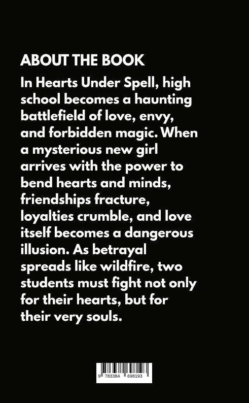 Hearts Under Spell is a YA Romantasy about love, betrayal, and the dangerous allure of power. It follows Lena, a brilliant and beautiful student, whose perfect relationship with Jason makes her the target of jealousy. When a mysterious new girl with the power ...