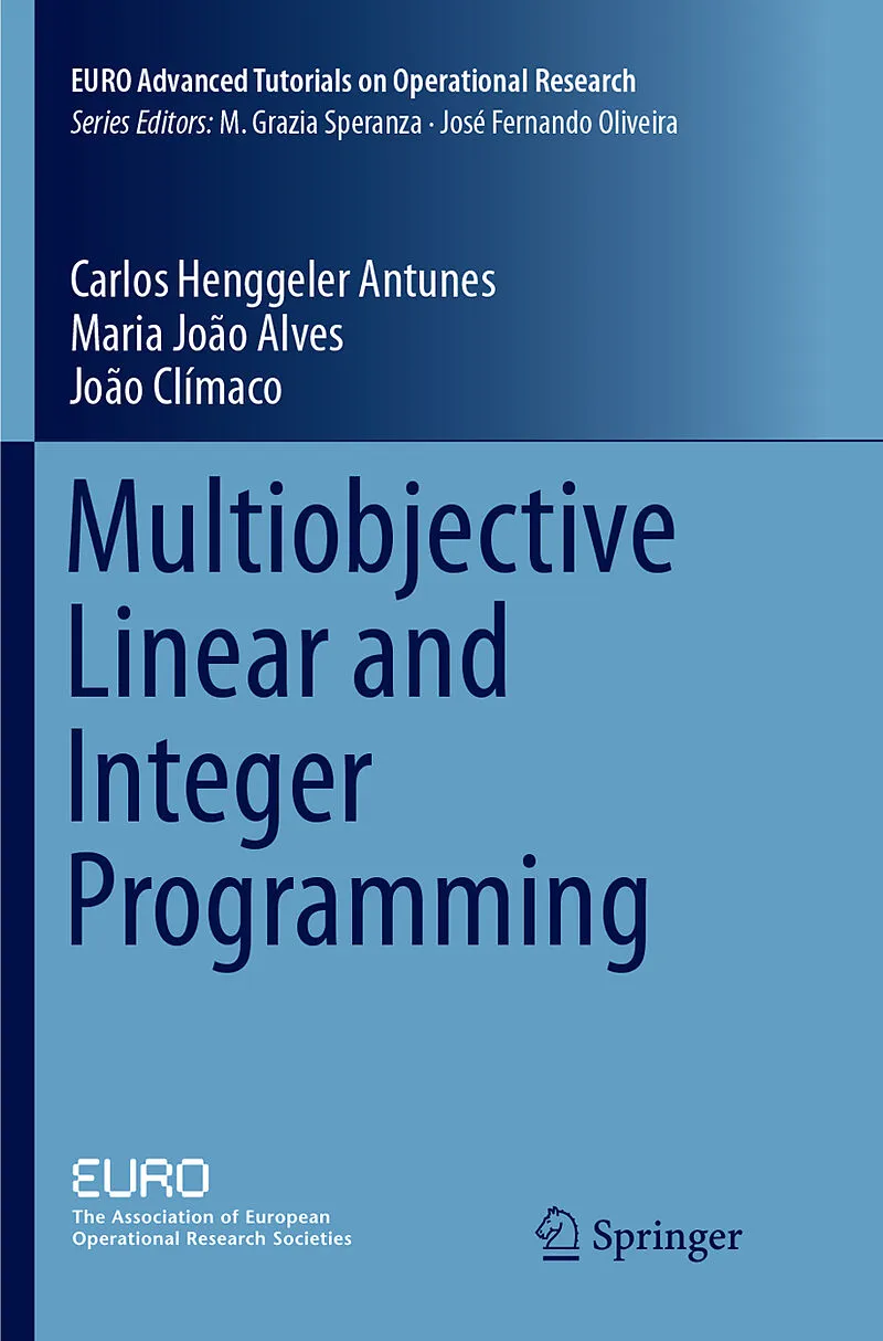 Carlos Henggeler Antunes is Professor at the Department of Electrical and Computer Engineering of the Faculty of Sciences and Technology of the University of Coimbra, Portugal, and researcher at the R&D Institute INESC Coimbra. He received the PhD degree in Electrical Engineering, specialization in Optimization and Systems Theory, at the University of Coimbra. He has published papers in international journals including the European Journal of Operational Research, Annals of Operations Research, Energy Conversion and Management, Omega, OR Spectrum, Neurocomputing, Optimization and Engineering, Energy, Renewable and Sustainable Energy Reviews, IEEE Transactions on Sustainable Energy, Computers and Operations Research, Journal of the Operational Research Society. He is Editor of the EURO Journal on Decision Processes and member of the Editorial Board of the Journal of Energy Markets. His research interests are focused on multiple objective optimization and metaheuristics, multiple criteria decision analysis, energy systems and policies, energy efficiency. Maria João Alves is Professor at the Faculty of Economics of the University of Coimbra, Portugal, and researcher at the R&D Institute INESC Coimbra. She received a first degree in Computer Engineering from the Faculty of Sciences and Technology of the University of Coimbra and a PhD in Management (specialization in Operational Research) from the Faculty of Economics of the University of Coimbra. She is author of several scientific papers published in international journals, including European Journal of Operational Research, Computers and Operations Research, Journal of Heuristics, Journal of Multi-Criteria Decision Analysis, Optimization, Journal of Global Optimization, Applied Mathematics and Computation, and an article in the Encyclopaedia of Optimization. Her research activities are mainly focused on multiobjective optimization, in particular multiobjective linear, mixed-integer, fractional and bilevel programming. Her interests include exact methods and metaheuristics, namely multiobjective evolutionary algorithms and particle swarm optimization, applications and decision support systems. João Clímaco is Retired Professor at the Faculty of Economics of the University of Coimbra, and researcher at the R&D Institute INESC Coimbra. He is member of the Editorial Board of Coimbra University Press. Presently he is collaborating in several projects of SAGE/UFRJ Rio de Janeiro, Brazil, as special invited researcher of the Science without Borders Program. He obtained the MSc degree in Control Systems at the Imperial College of Science and Technology, University of London, and the PhD in Electrical Engineering, specialization in Optimization and Systems Theory, at the University of Coimbra. In 2013 the International Society on MCDM awarded him the Georg Cantor Award. He is past Vice-President of ALIO - Latin Ibero-American OR Association and past member of the International Executive Committee of the International Society on Multiple Criteria Decision Making. He is a member of the Editorial Board of Group Decision and Negotiation, International Transactions in Operational Research, International Journal of Decision Support Systems. He has co-authored about 130 papers mostly devoted to MCDA methodology, algorithms, telecommunication applications, and environmental applications in journals including European Journal of Operational Research, 4OR, Computers and Operations Research, Journal of Heuristics, Journal of Multi-Criteria Decision Analysis, Networks, Decision Support Systems, Group Decision and Negotiation, International Transactions in Operational Research, Telecommunication Systems, Photonic Network Communications, Technological Forecasting and Social Change.