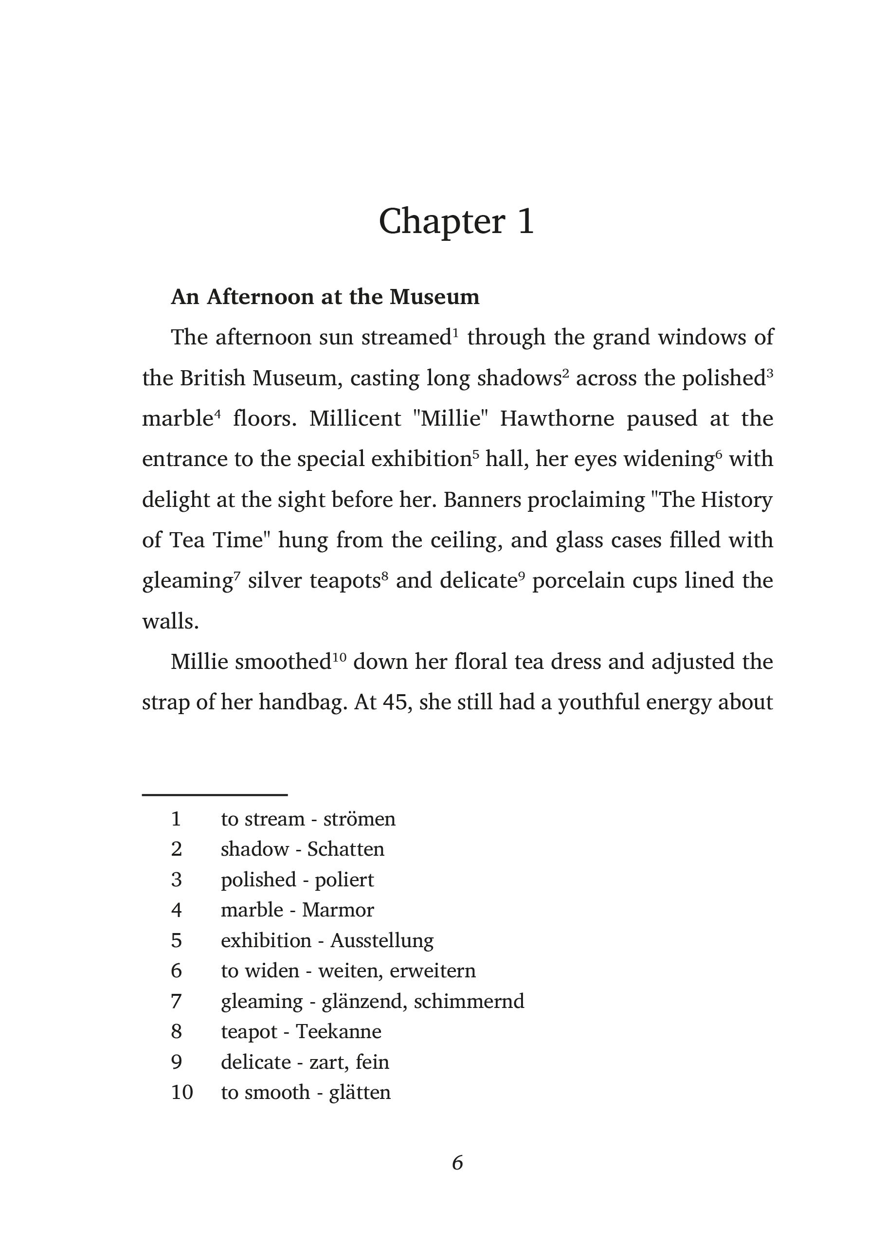 Leseprobe: https://easyoriginal.com/leseproben/DE73W.pdf Steep in Time - Steil in die Zeit Ein mitreißender Krimi für Teeliebhaber London, die Stadt der Geheimnisse und des Tees. Als eine wertvolle antike Teeuhr aus dem Britischen Museum gestohlen wird, ahnt d...