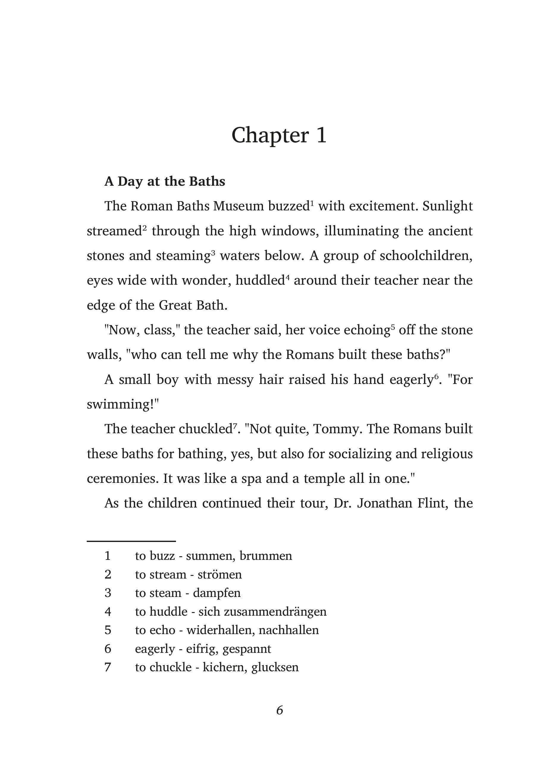 Leseprobe: https://easyoriginal.com/leseproben/DE74W.pdf The Missing Roman Coin - Die verschwundene römische Münze Tief unter den Straßen von Bath schlummert ein uraltes Geheimnis. Als eine seltene römische Goldmünze aus dem Museum verschwindet, ahnt niemand, ...